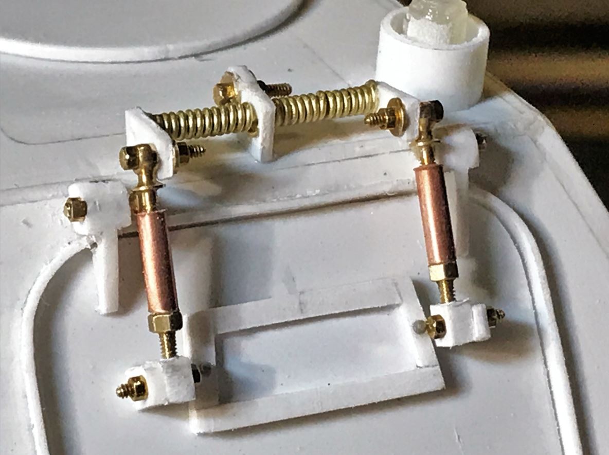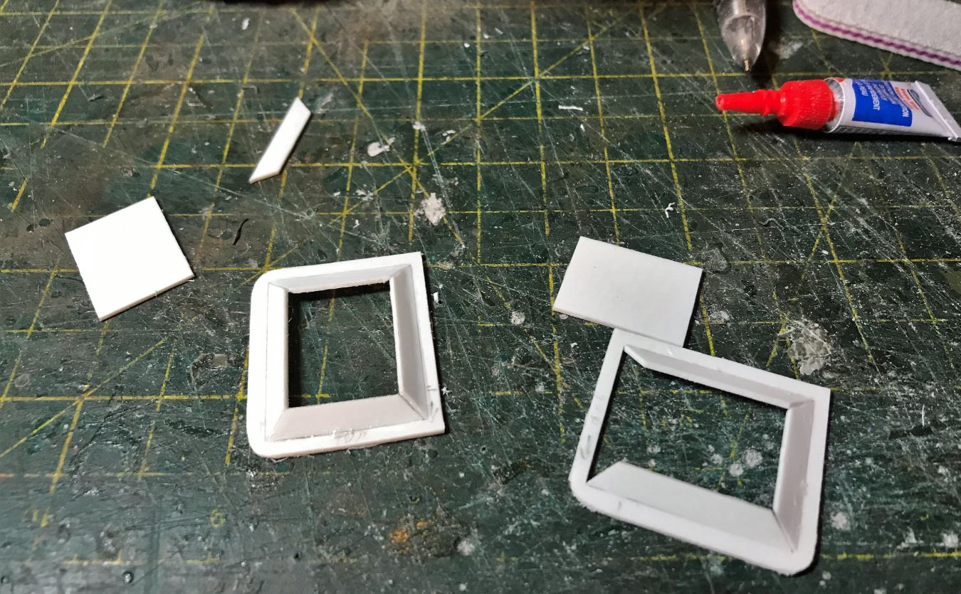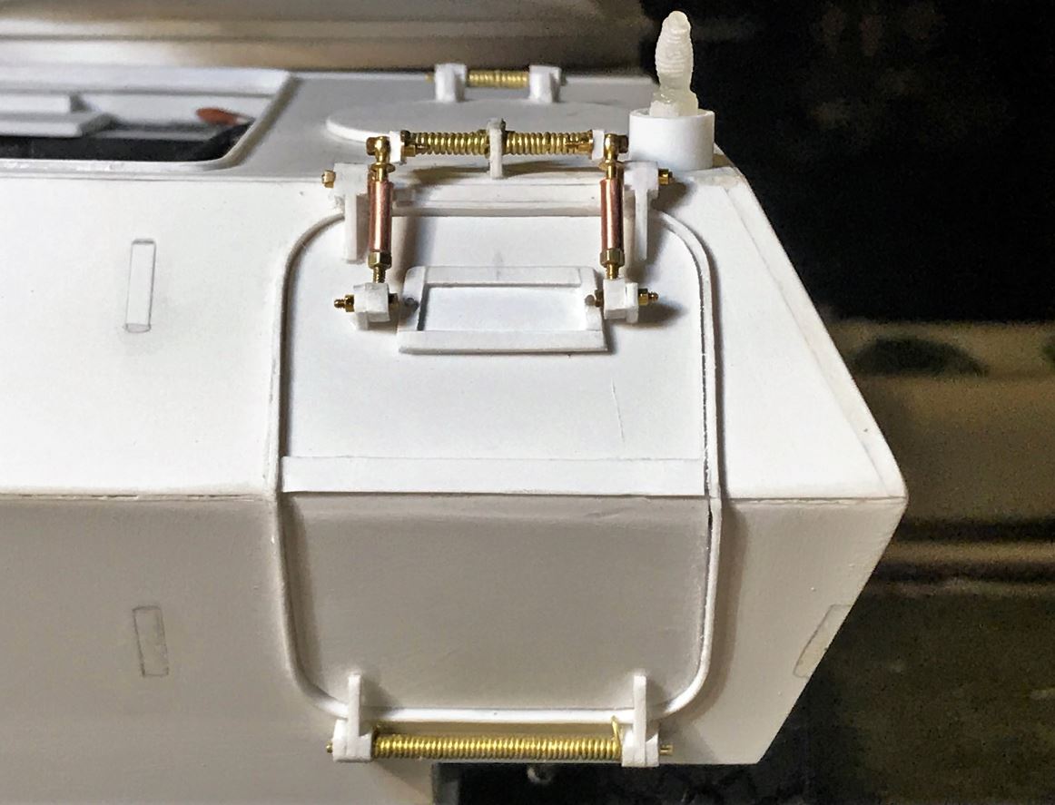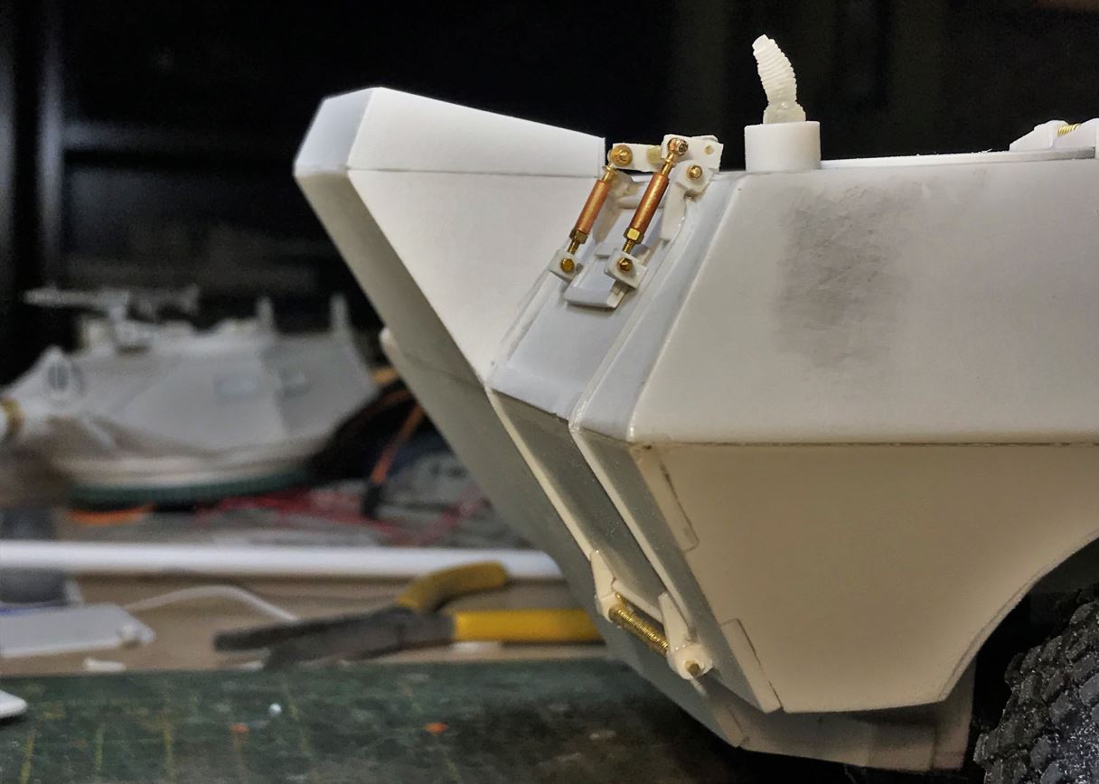With a total of 15 hatches of different shapes and sizes all around the vehicle, completing the "hinge" job on this model requires patience and an assembly chain. Ludwig provides some basic hinge shapes but they need to be downsized by about half, and there are too few of them, so many hinges need to be completely created from residual plasticard sheet. M1 x 5mm bolts and nuts are also required for most.