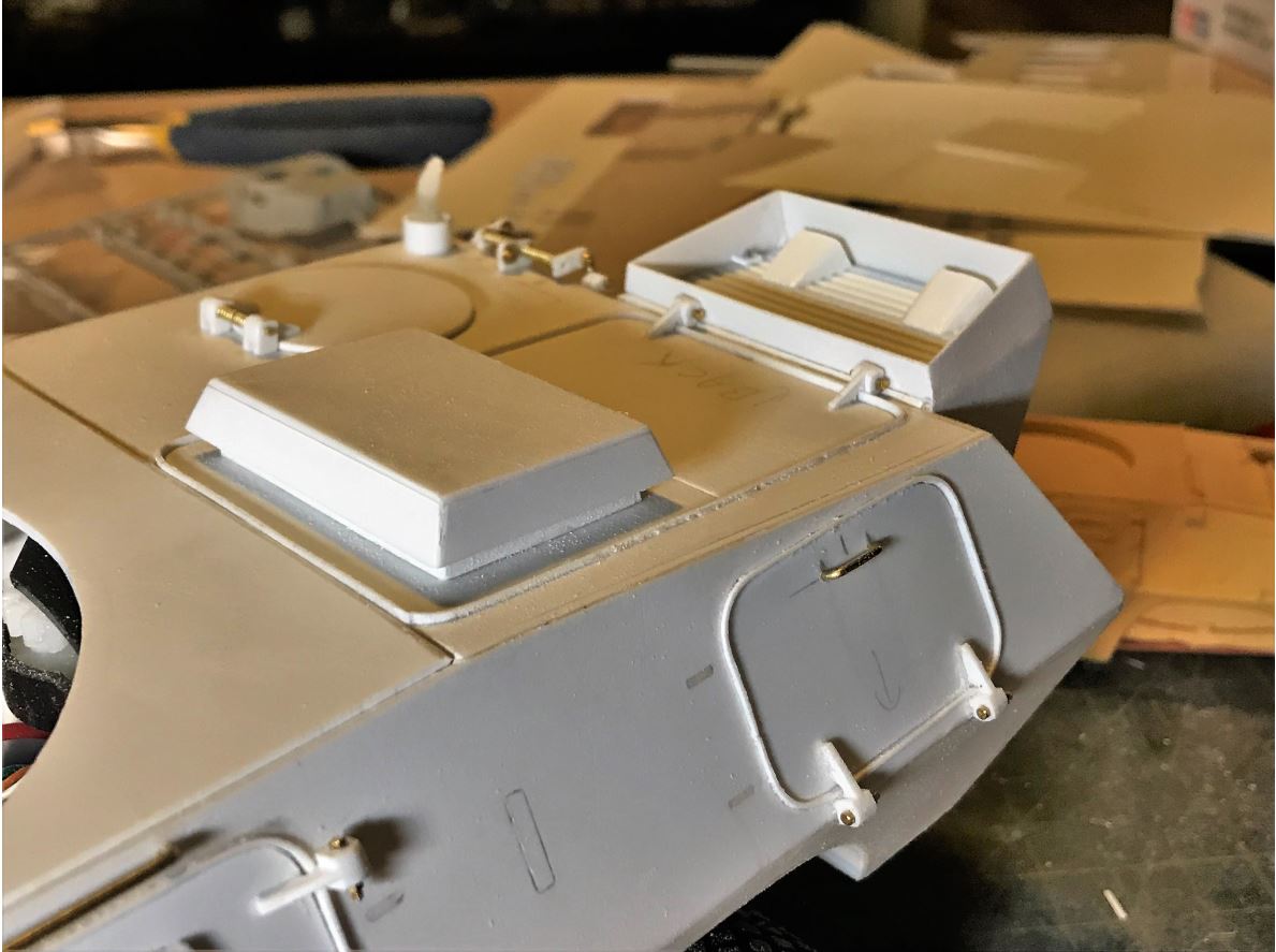 The front hatches assembly, no real issue but they require a lot of sanding and superglue filler.