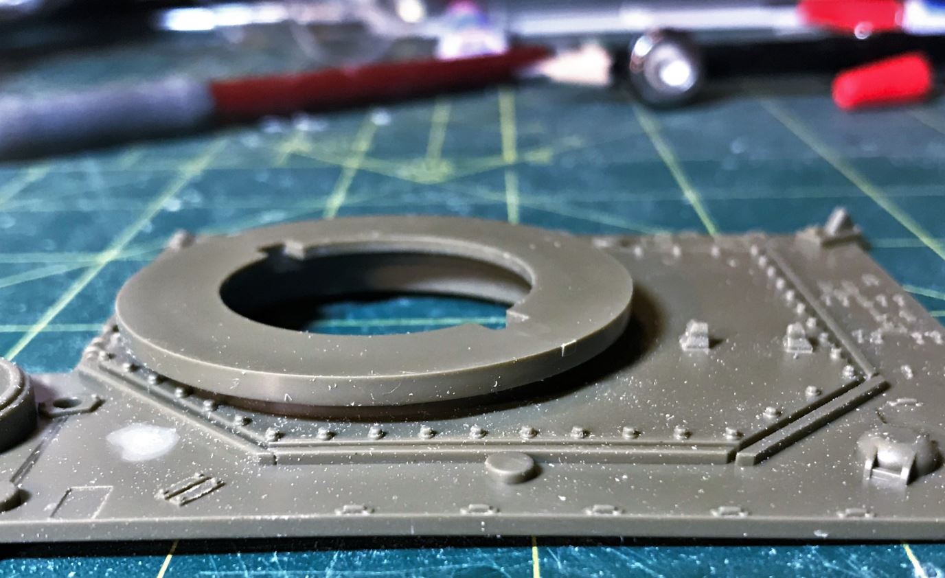 The sanding of the turret roof is difficult but doable. Again, most of the small built-in details were erased in the process and will need to be reproduced in plasticard.