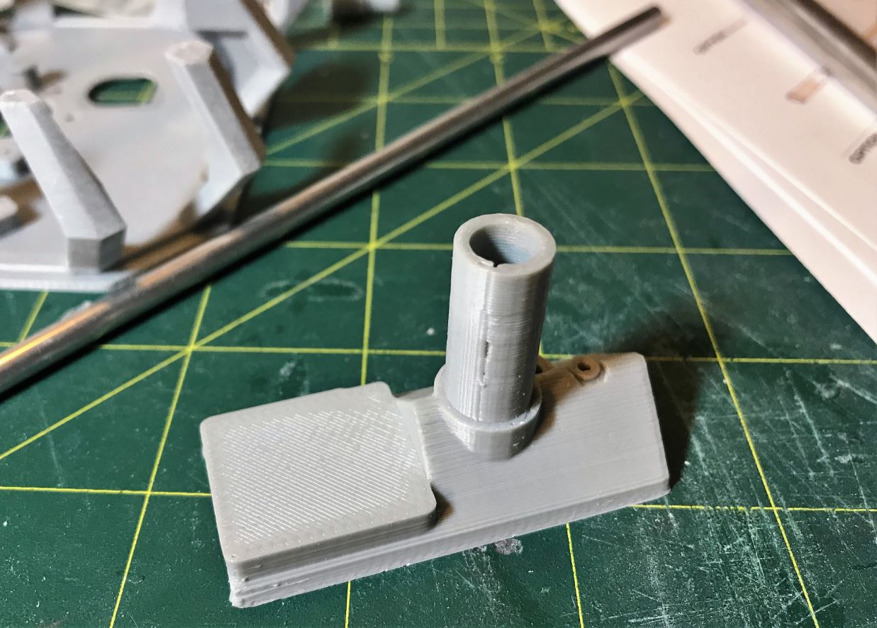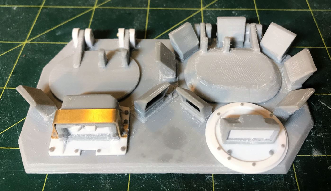 Sanding and polishing the 3D printed parts takes a good two hours, the process is creating fine dust requiring the mandatory wearing of a N95 mask and thorough cleanup of the work area. The plastic is soft so it helps getting to a flat, smooth and acceptable finish. The sanding of the parts, which requires most built-in details to be erased, is essential. Otherwise, the heavy 3D printed lines will make the finished model look like a freak, painting will only make the printed lines show even more. As for the built-in detail, it is ok to erase it all with the sanding because most of it is not accurate for the MRV anyway.