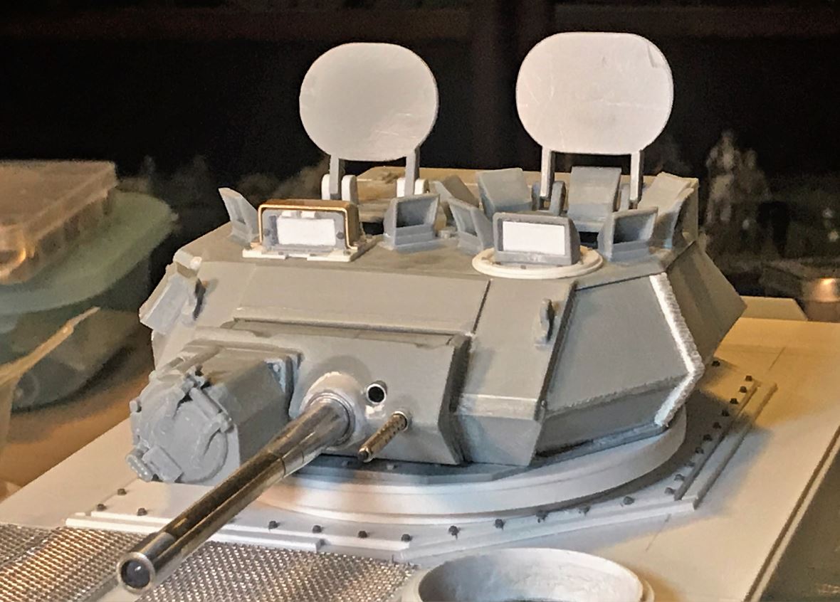 The turret core, minis its small detail that will be added later, such as the Infra red light on the right of the mantlet, smoke grenade launchers on both sides, brackets of all kinds, the two radio antennas, machine gun mounts, etc.