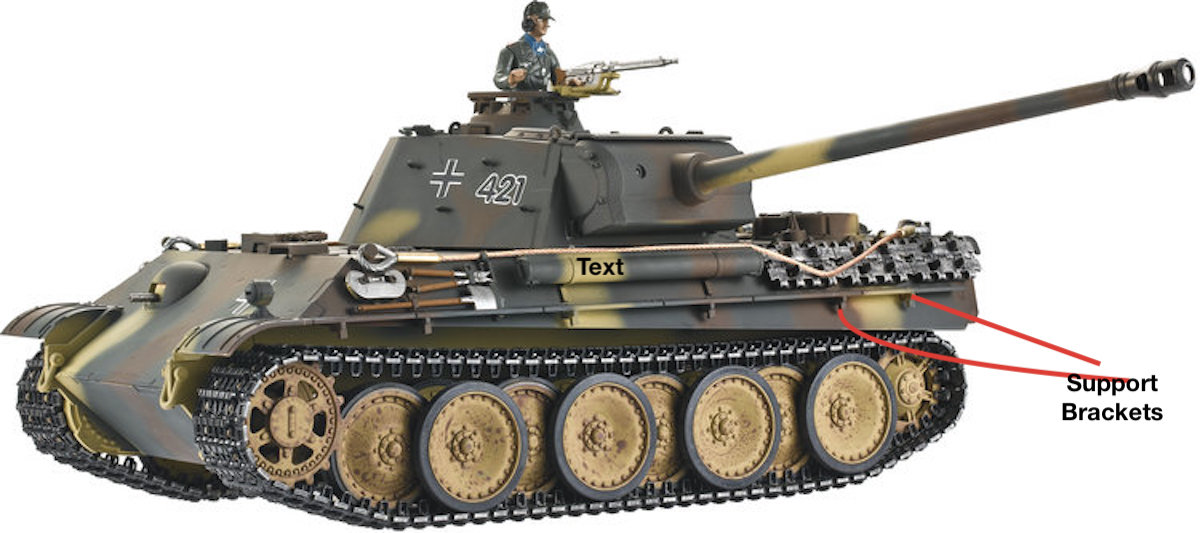 I take it the metal chassis, and proper wheels Painless referred to earlier are to be found on the $480 Panther Ausf., from Taigen Tanks. Well, yes, it would be nice to be riding around on those wheels.
