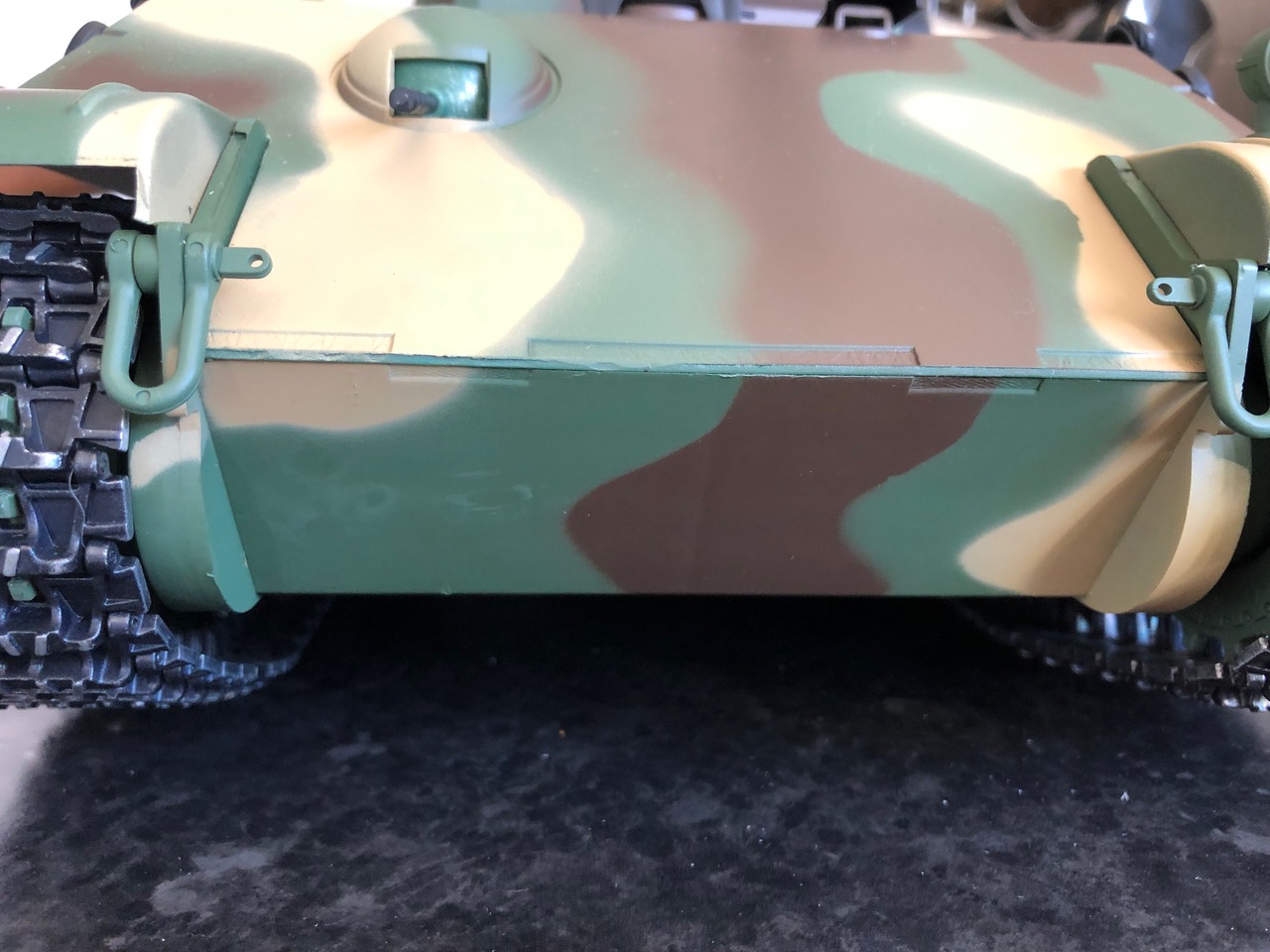 For consistency, I want the Taigen lower hull to match the camo on the HL upper hull. That means beginning with an overall coat of Dunkelgrun.