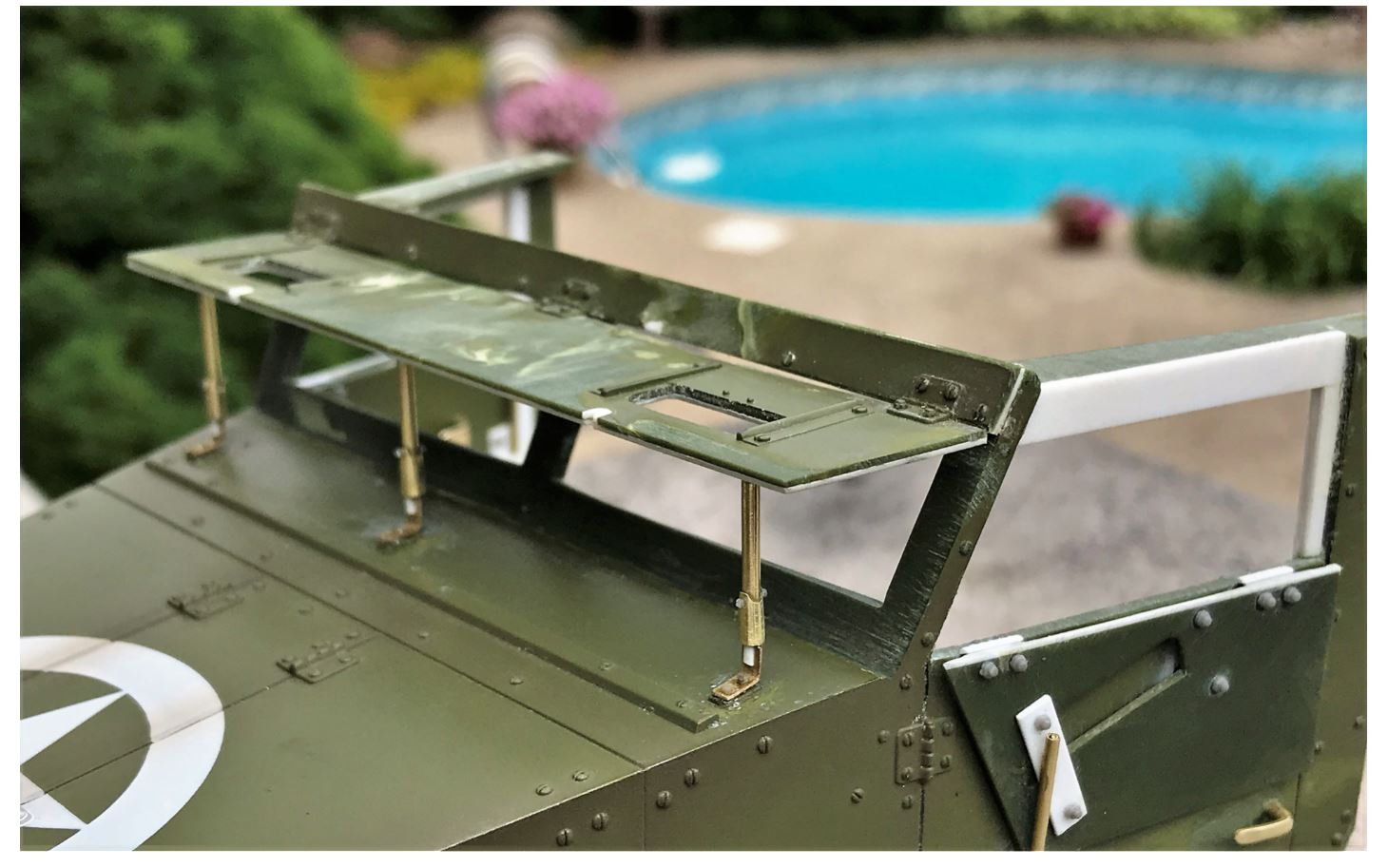 When raising the armored windshield, the three supports bars need to be crafted. Closer inspection reveals that they are more complex than thought, not just a stick. The idea is to create something as close as possible with the material available.