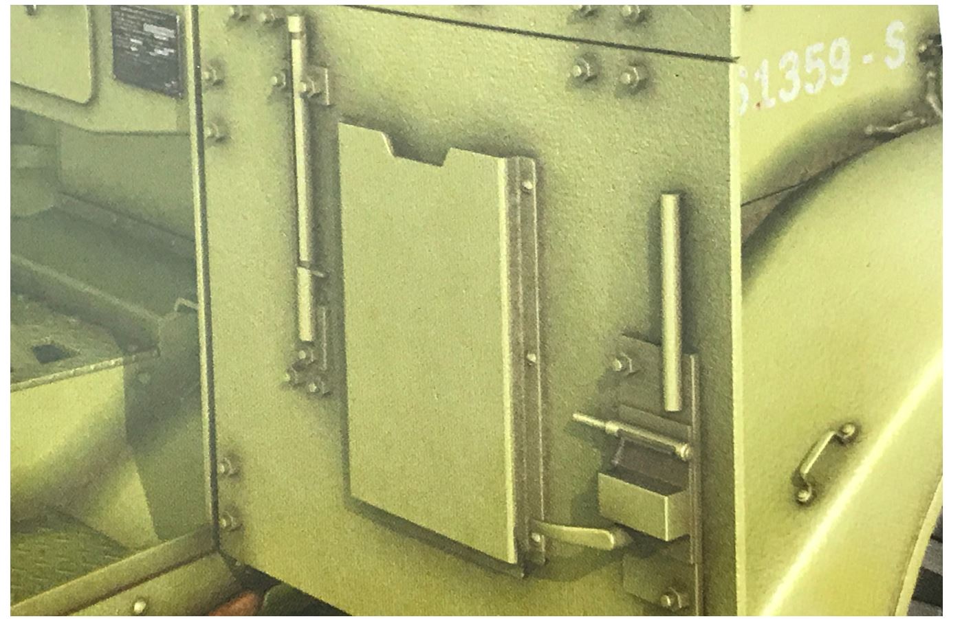 Interior view of the right door as seen in my reference book shown on the first post. It has a metal map case, locking mechanism and bolts. Those 3D graphics are fantastic and are mandatory for this detailing. Other views of the interior frame were great. Highly recommended.