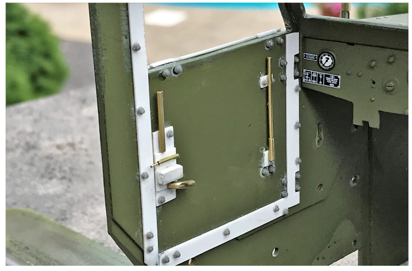 The flaps needed to be thinned significantly to be realistic. 1.4mm Meng nuts and some brass tubes are required. The tie downs remains to be created and will be added at the end of the build. I found that these are usually fragile and I would lose a few during the heavy manipulation of the model during the build. Better keep fragile stuff for the end. The door handle which was only a blob of plastic has been removed and redone in brass. Still need some refining and improvement. It is not uncommon for me to redo things twice or more until I am satisfied with the results. I have to see the small items on close up pictures to really notice the quality and determine if ok or not.