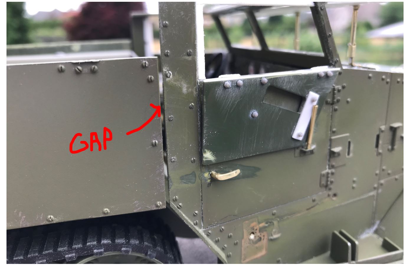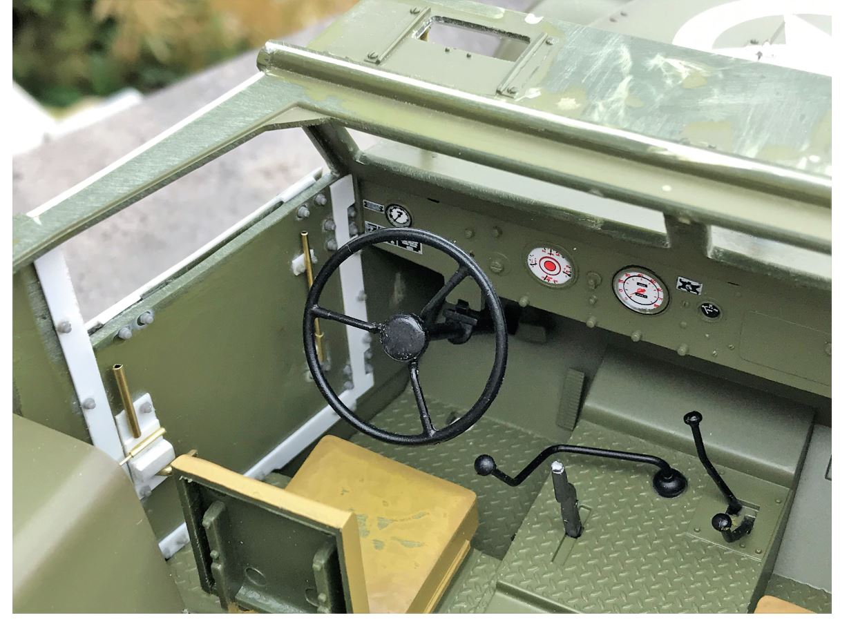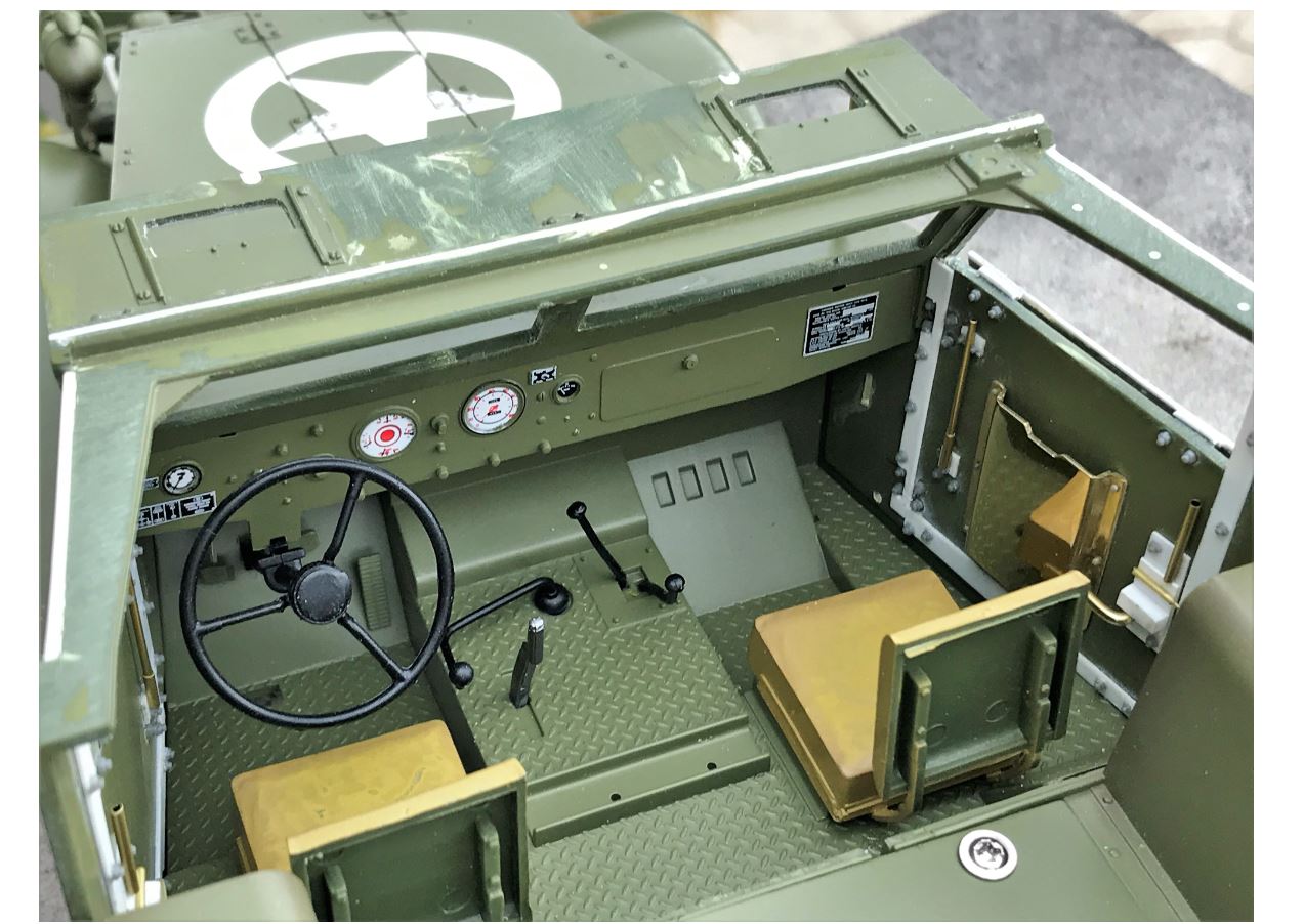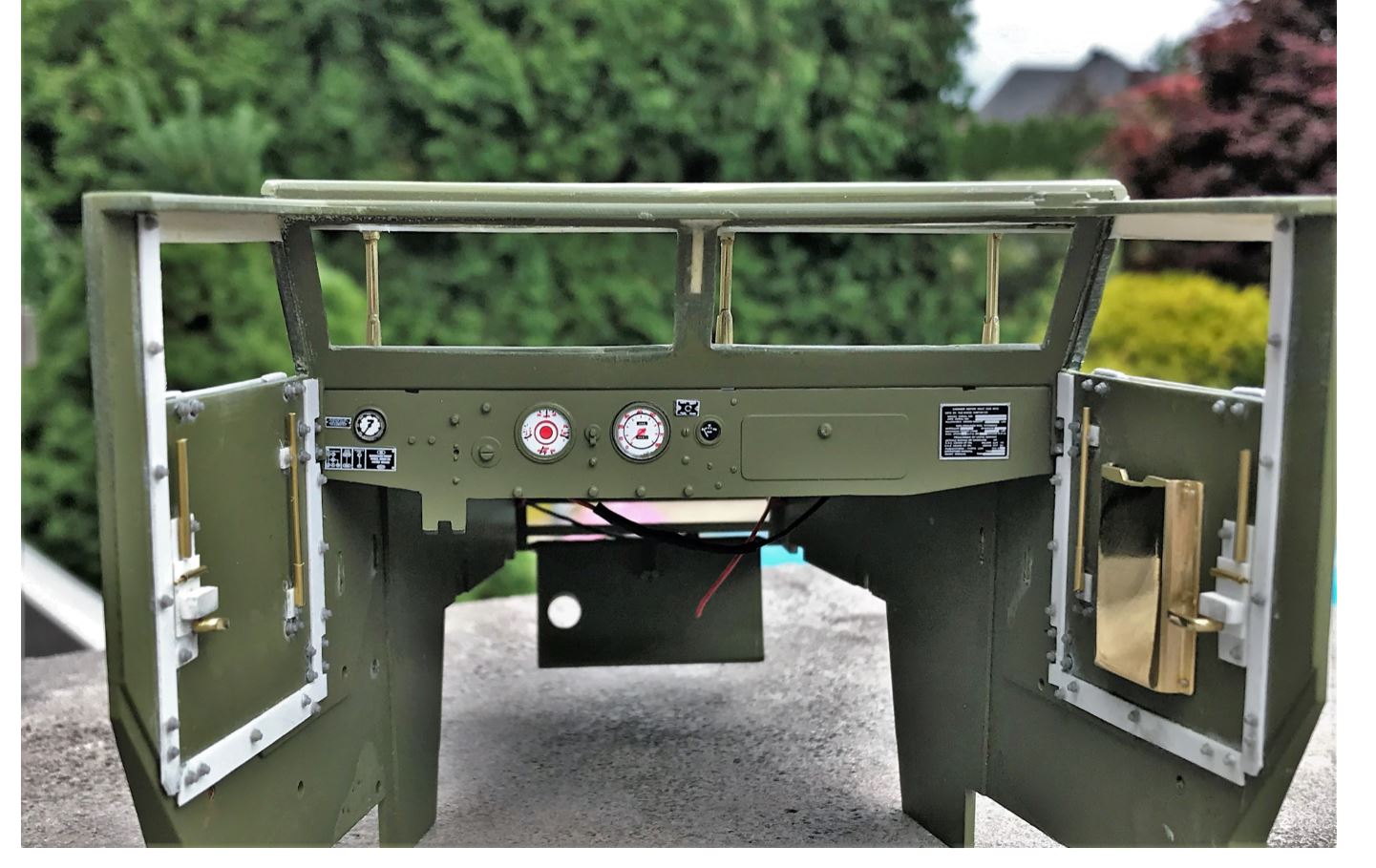 Left door interior detail. Notice the frame around the doors as seen in references, easily reproduced. But the cabin plastic is a lot thicker than the real M16 so some compromises are required. I did not see myself thinning all that plastic. Ensure that the interior nuts are matching the bolt location seen on the exterior side of the door and walls.
