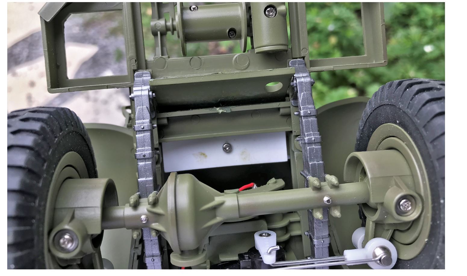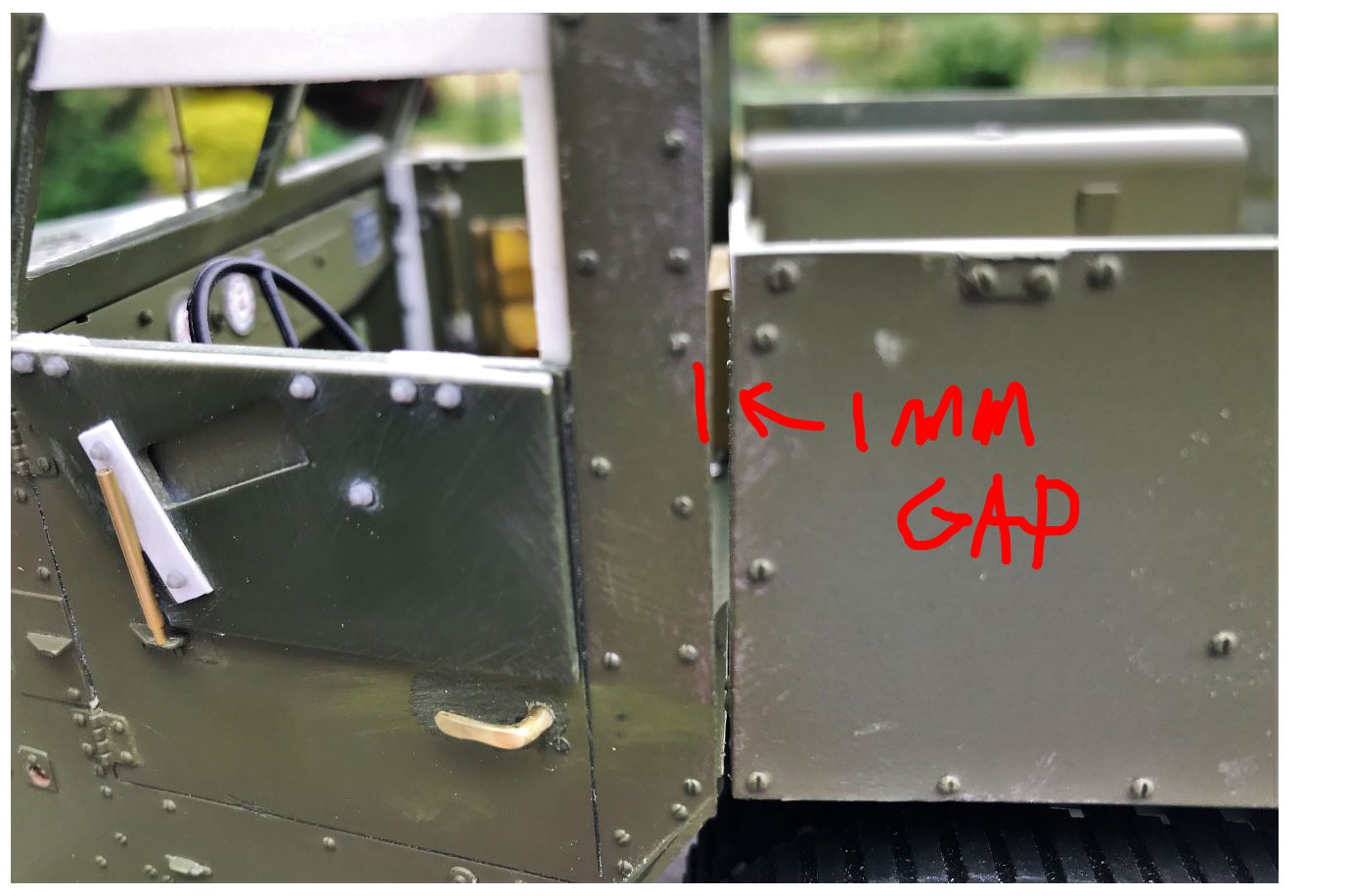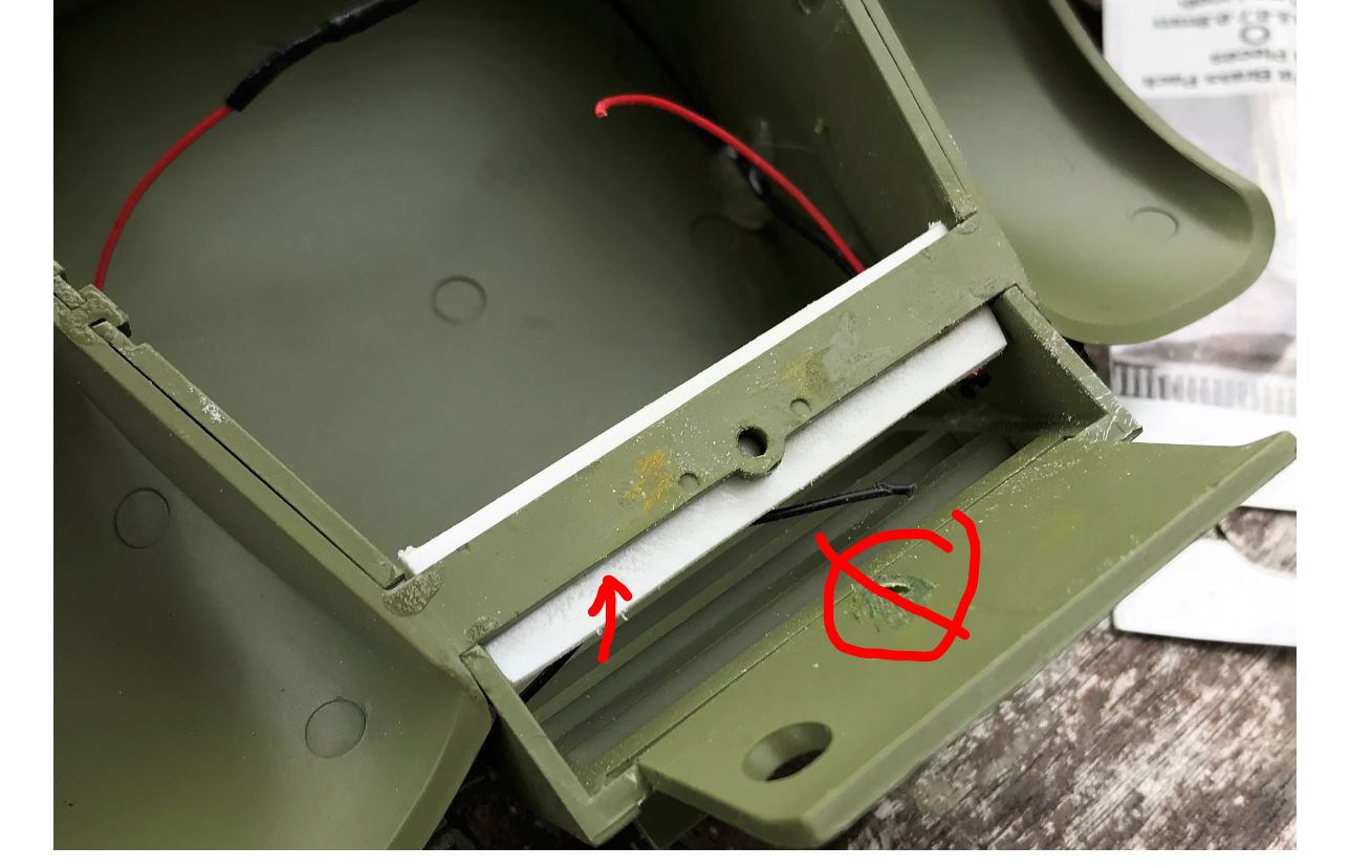 Left door interior detail. Notice the frame around the doors as seen in references, easily reproduced. But the cabin plastic is a lot thicker than the real M16 so some compromises are required. I did not see myself thinning all that plastic. Ensure that the interior nuts are matching the bolt location seen on the exterior side of the door and walls.