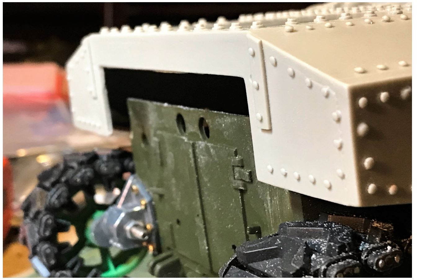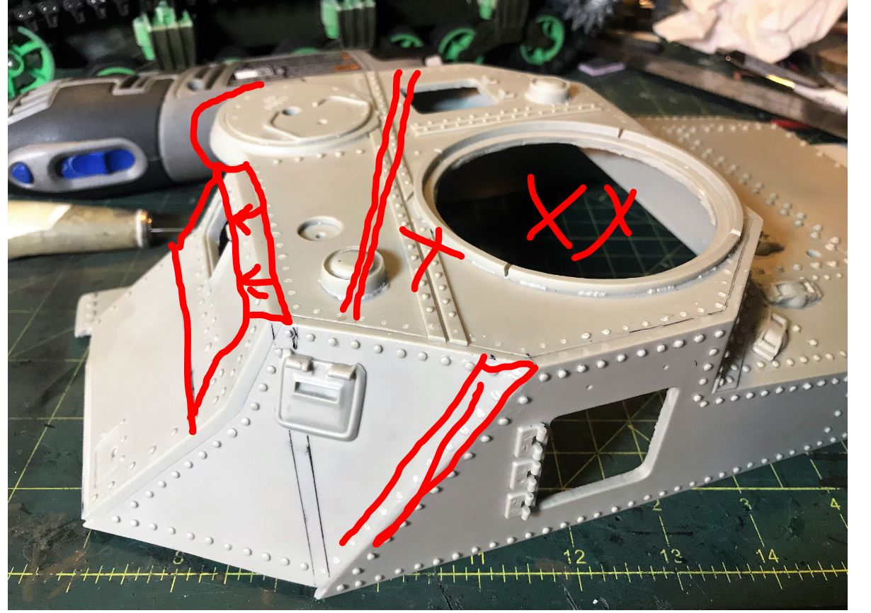 Now i have a good base to continue with the build, a good size turret will fit in. All the detailing need to be redone at the right location, and all the bolt heads put back..