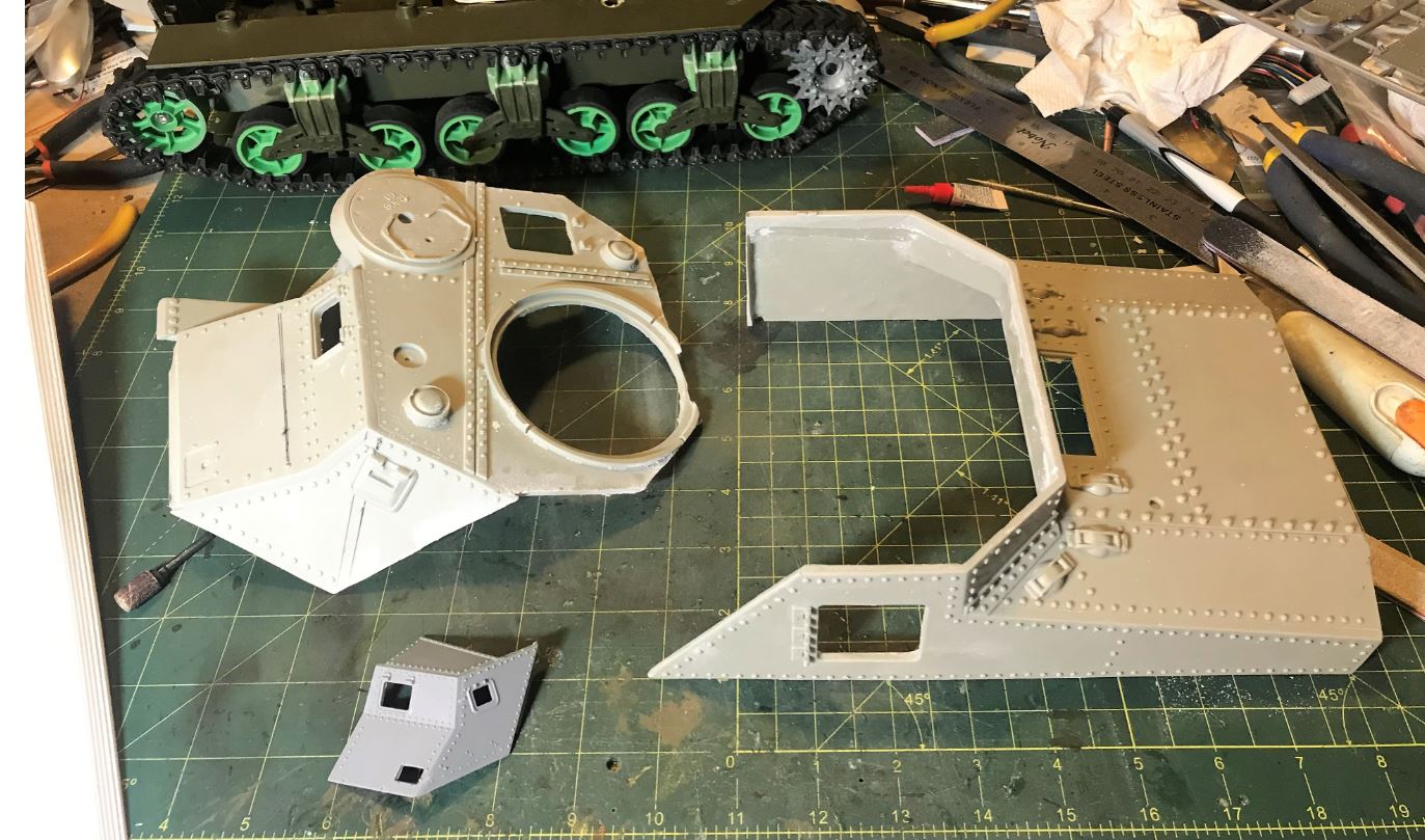 Final plans are made for the surgery. Need to extend the upper hull by at least 5mm towards the front to make room for the larger turret on top, redo the frontal plates and all features as per references.