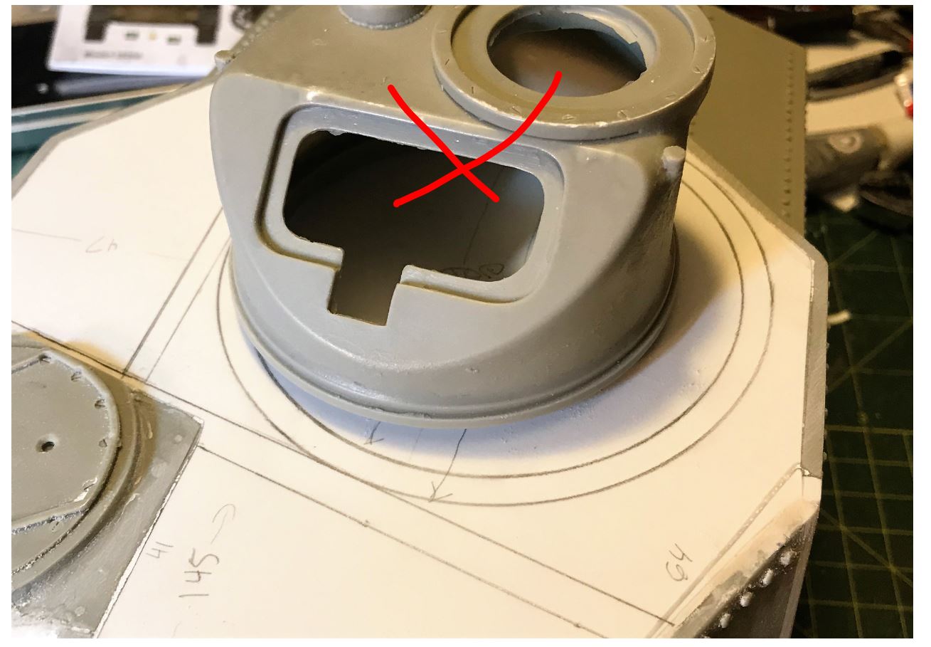 The new upper section is applied as an overlay, the old one behind is removed, freeing about 3mm in space on the turret top.