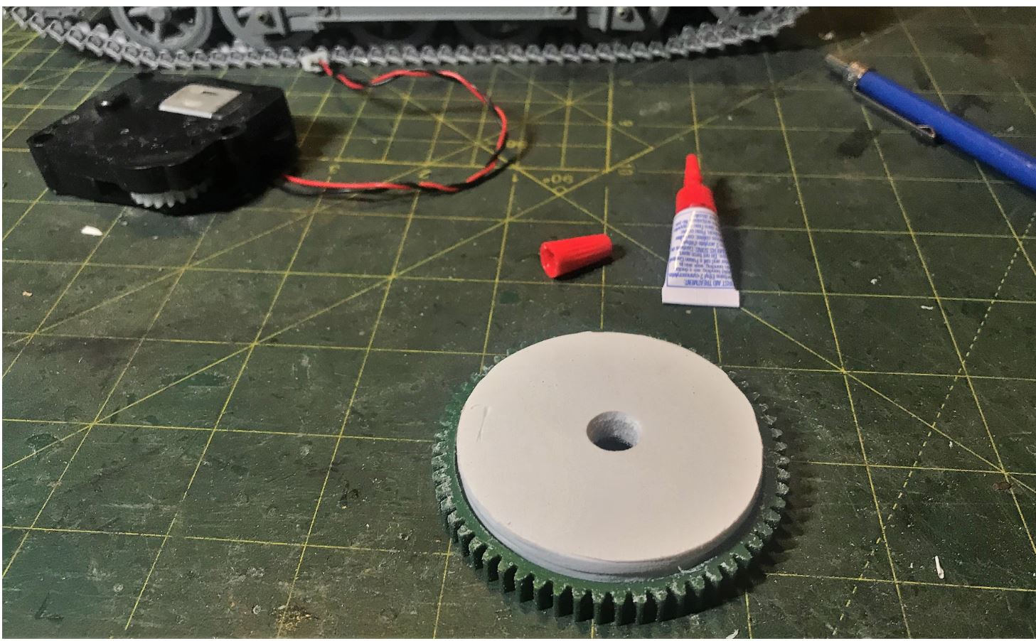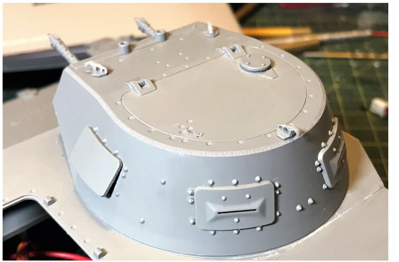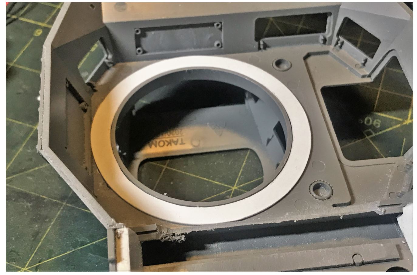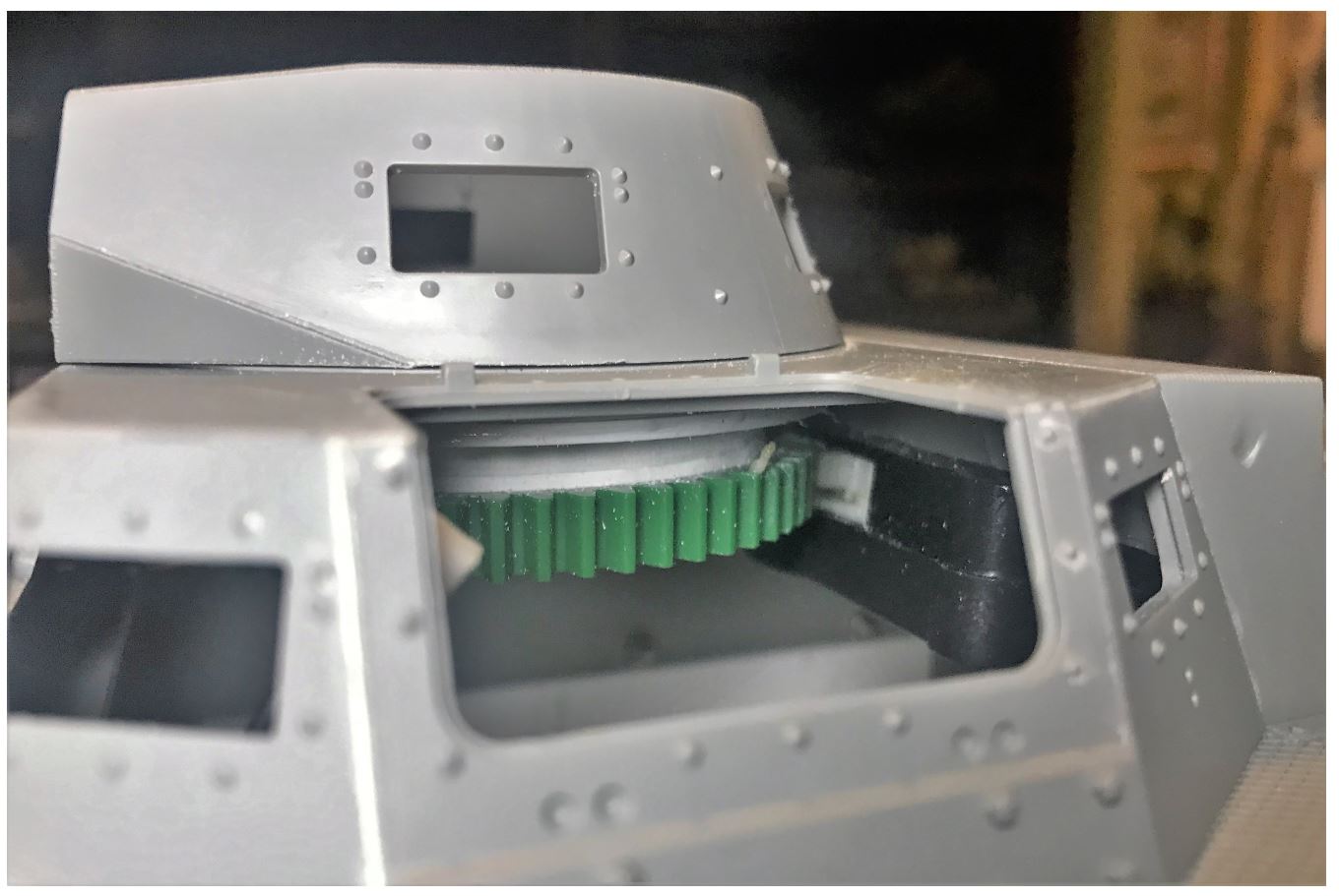 Spacer roundels are made to bridge the bottom of the turret with the height of the rotation unit. They also give some weight to the turret bottom.