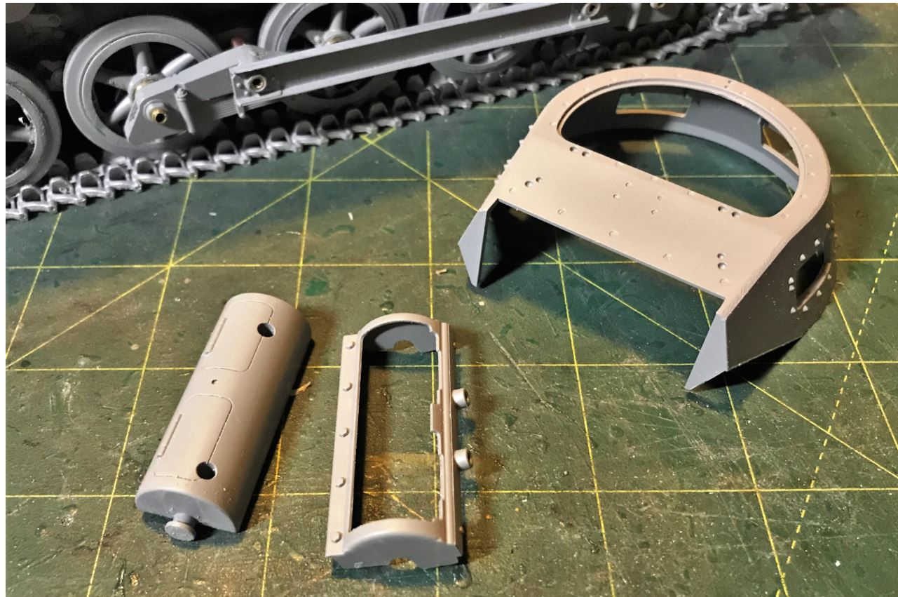 Now that the most complex and risky part of the build is done, it will be a more relaxing completion of the kit going forward. The treadplates of the fenders are extremely well detailed.