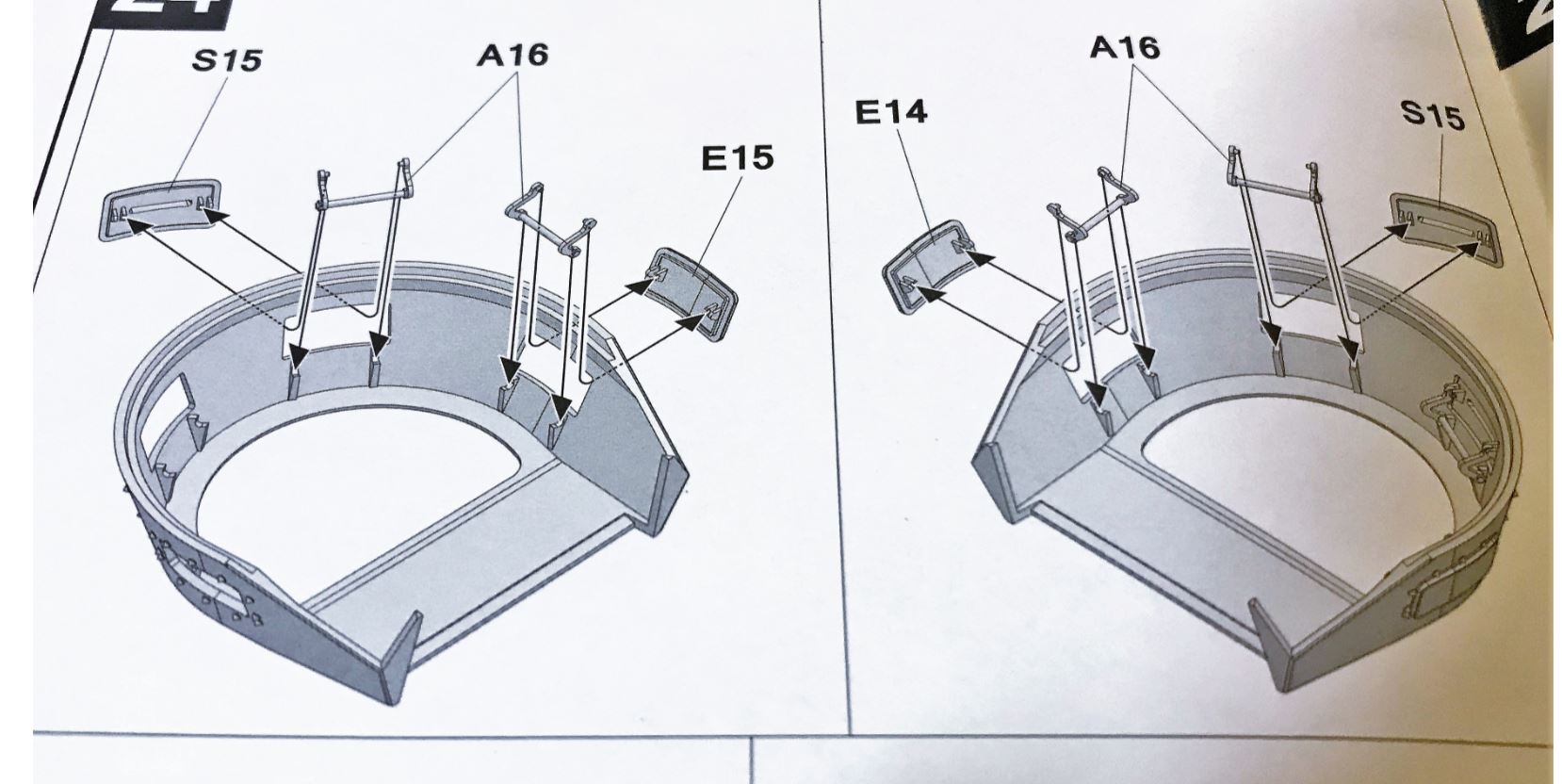 Looking at the main turret parts, i was happy to notice that the model is providing a good mantlet and pivoting mount for the machine gun elevation, requiring limited work for RC control.