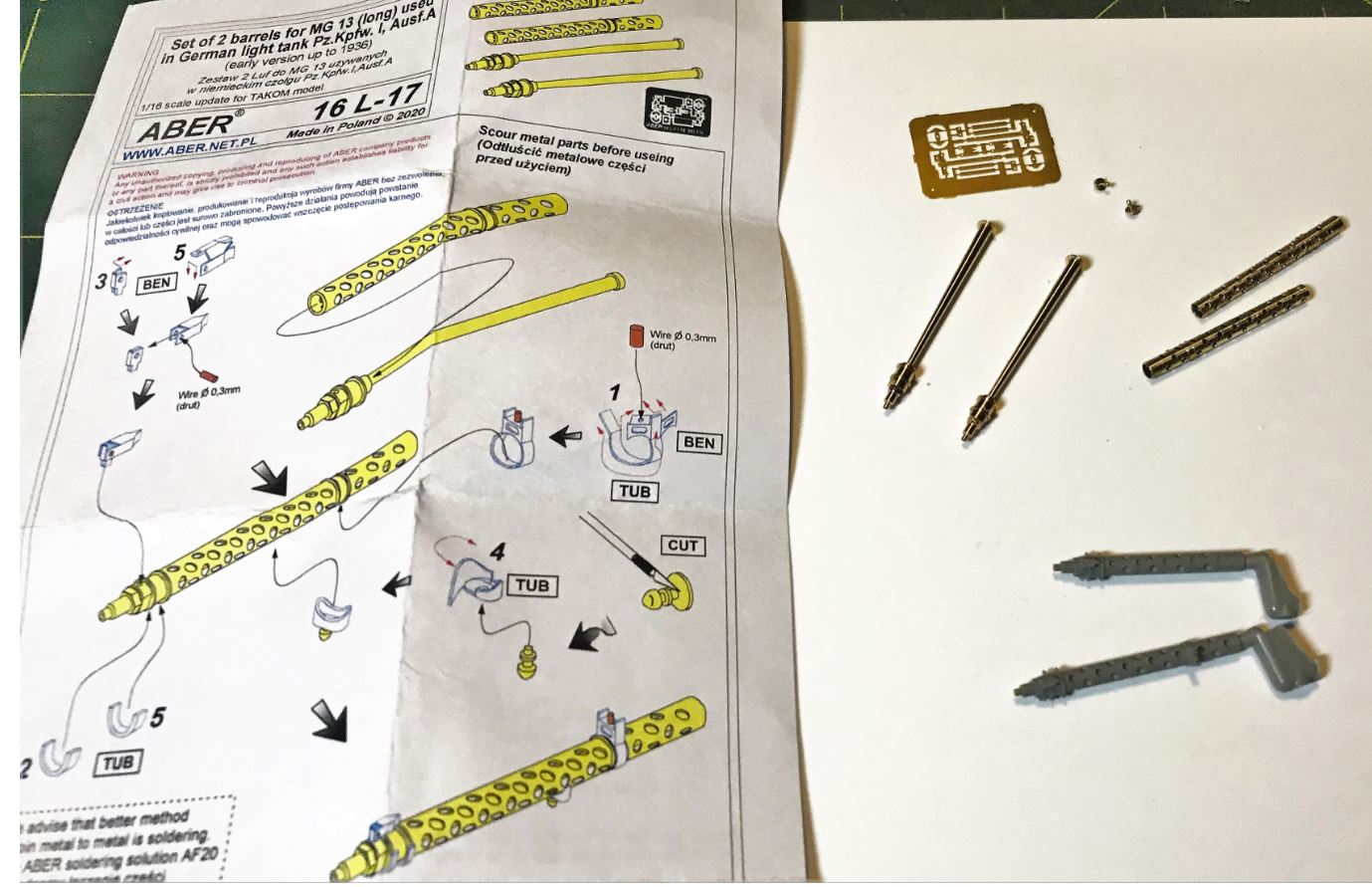 After a study of the Aber instructions, provided brass parts and comparison with the Takom plastic parts, i determined that i would not be using the Aber kit on this build. First, the brass and Photo Etched parts are extremely small, i could barely make them out wearing two pair of glasses on top of each other. So small, and their assembly is quite complicated.