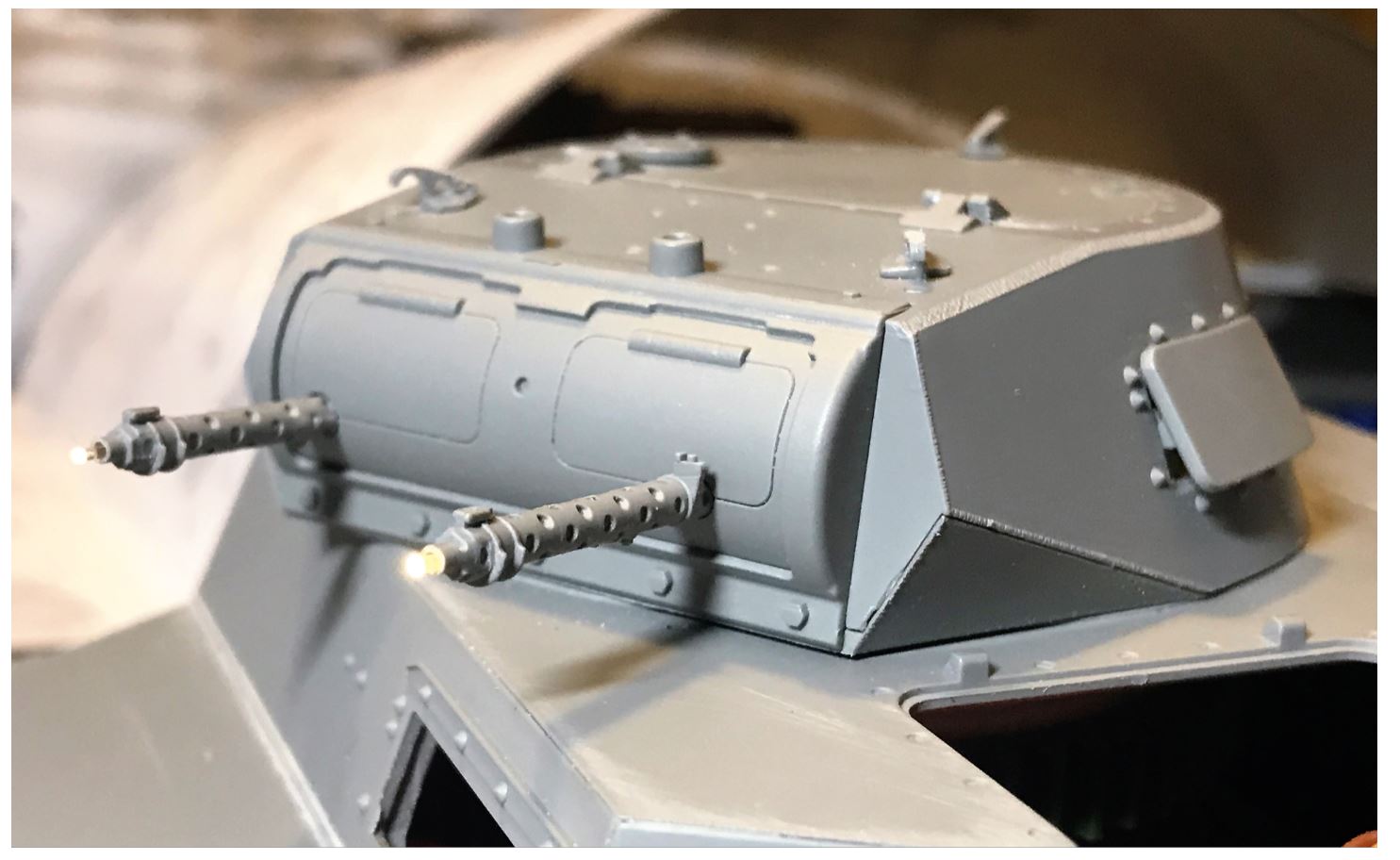 The turret will be given elevation with flash/sound on the 2 machine guns.