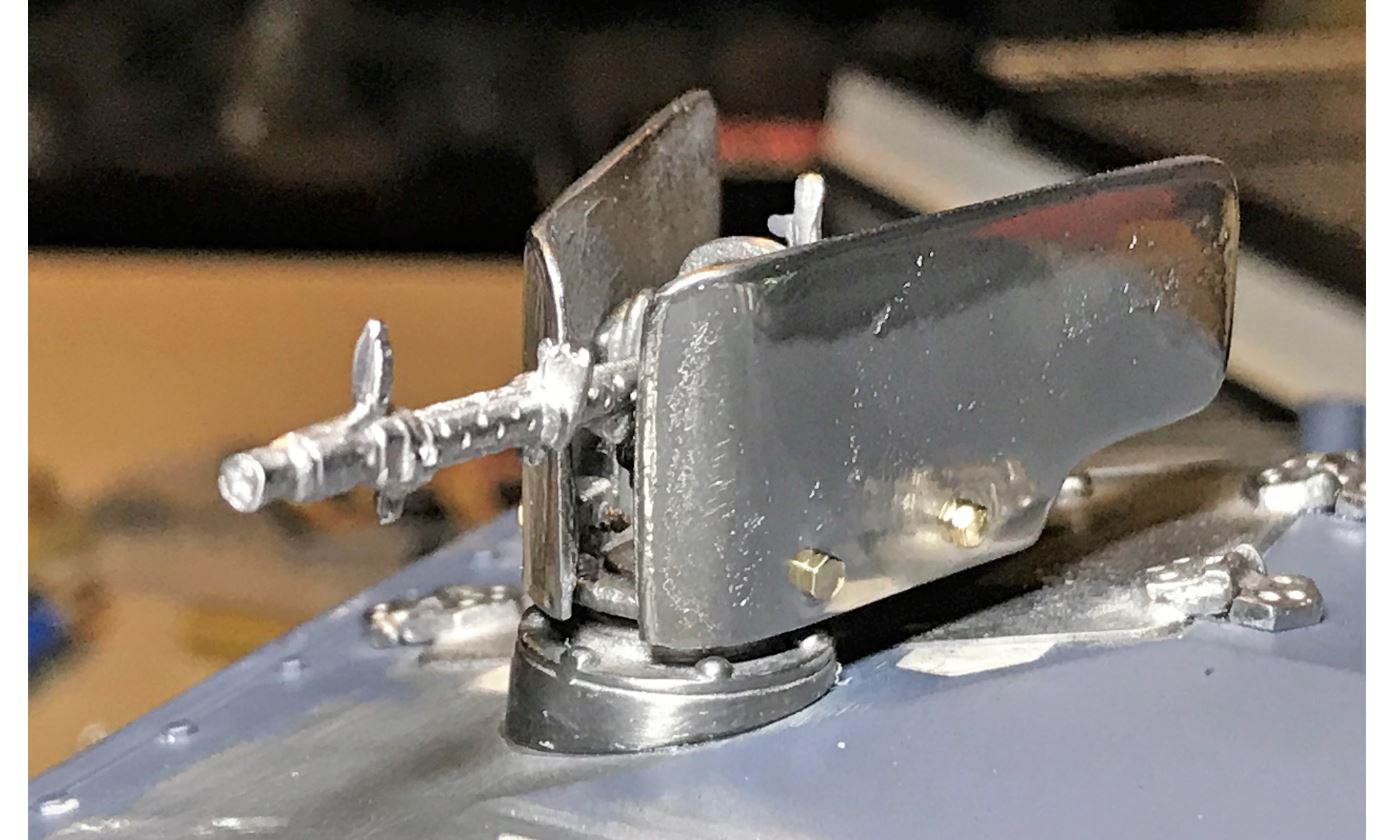The new spare track holder is ready. The long metal rod of the butterfly nuts were kept and they go all the way into the plasticard bracket for a more solid integration.