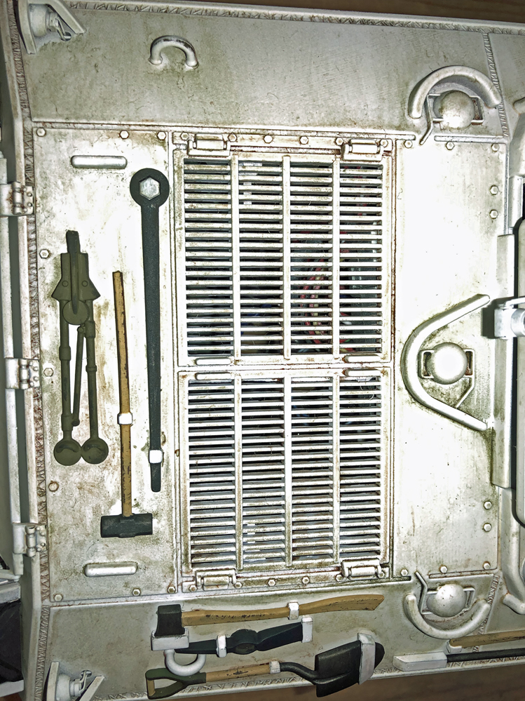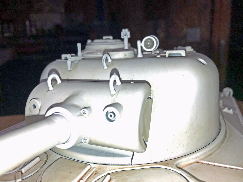 The turret is less weathered than the upper hull, but more than shows up in this photo. The searchlight is "Crystal Clear" over silver. I layered the "Crystal Clear" and drying took ten days. I may still make a lens for it.