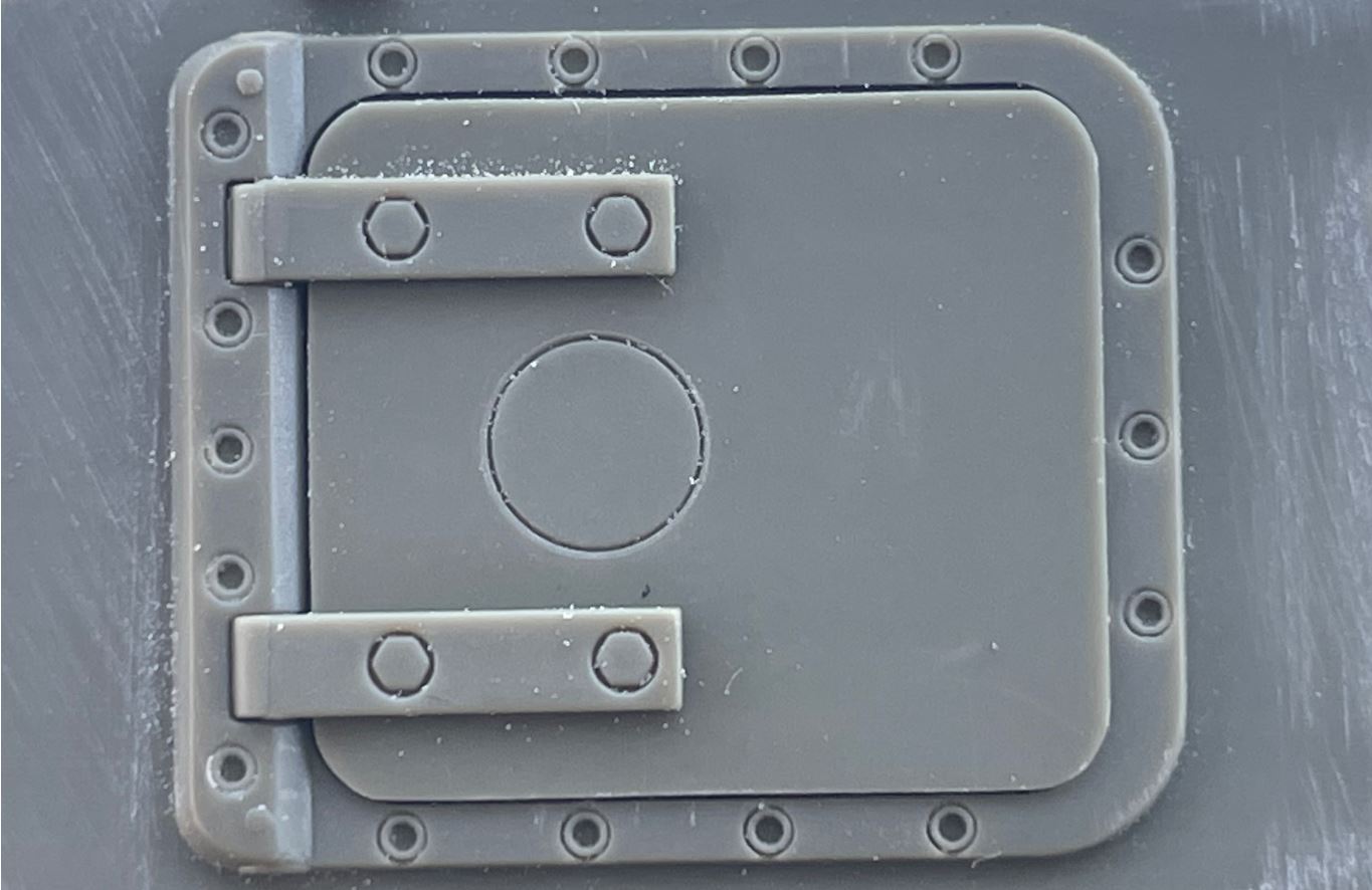 The Churchill Mk III has a rectangular escape hatch on both sides, lager than the rounded one on later variants. As it is a very visible feature of the tank, especially on DIeppe beach, i wanted to make sure it is well represented and operable.