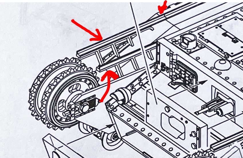 Now building the frontal idler extensions as shown here. I am noticing that all tanks that have broken tracks show tracks with deep sagging just before the sprocket.
