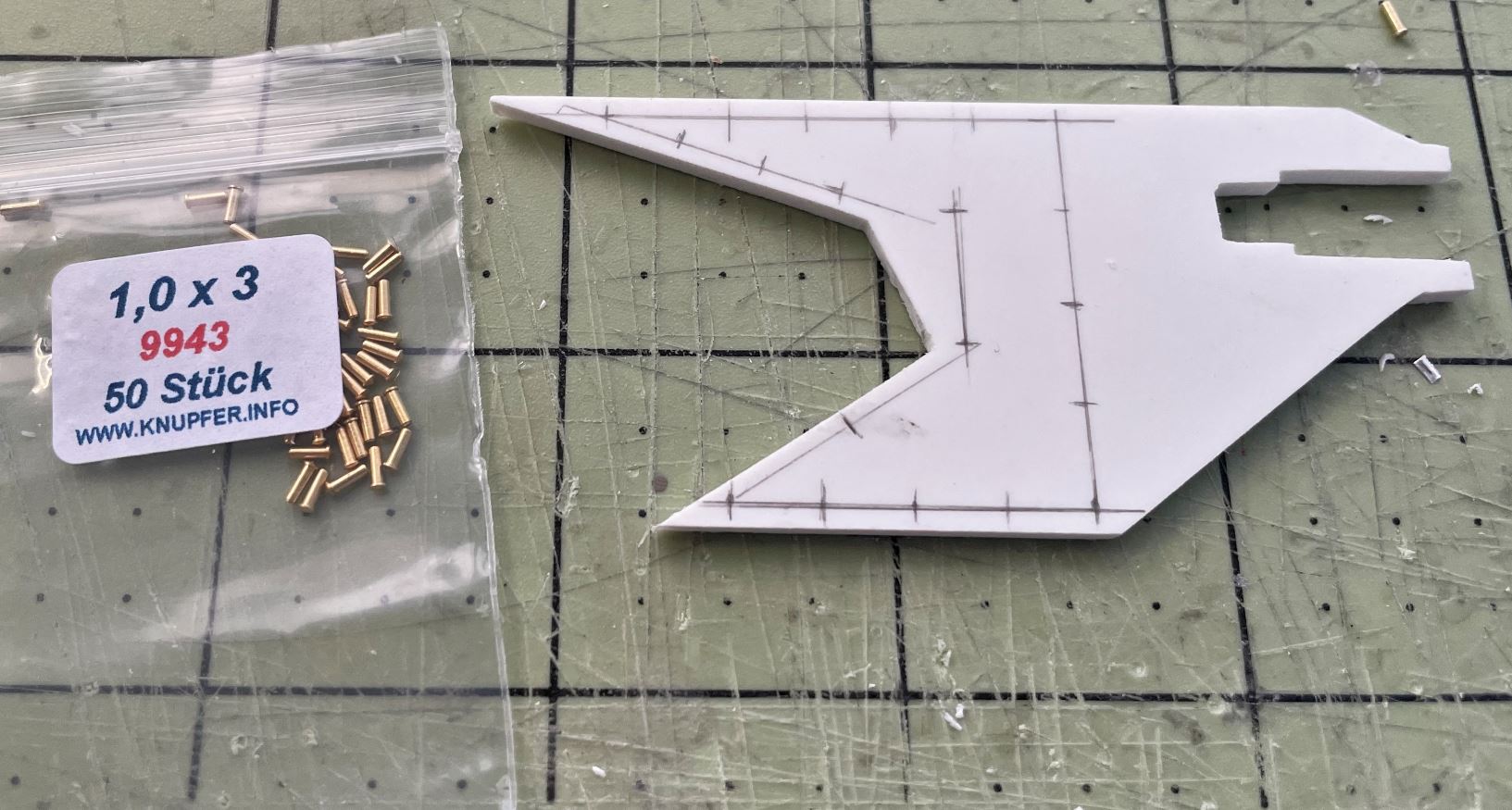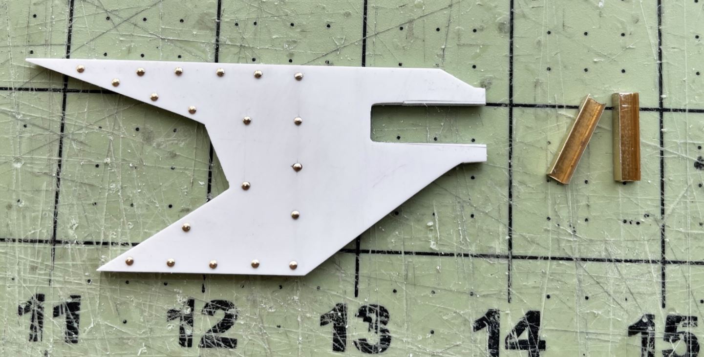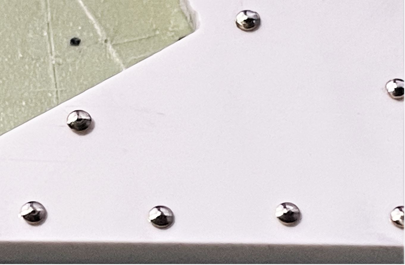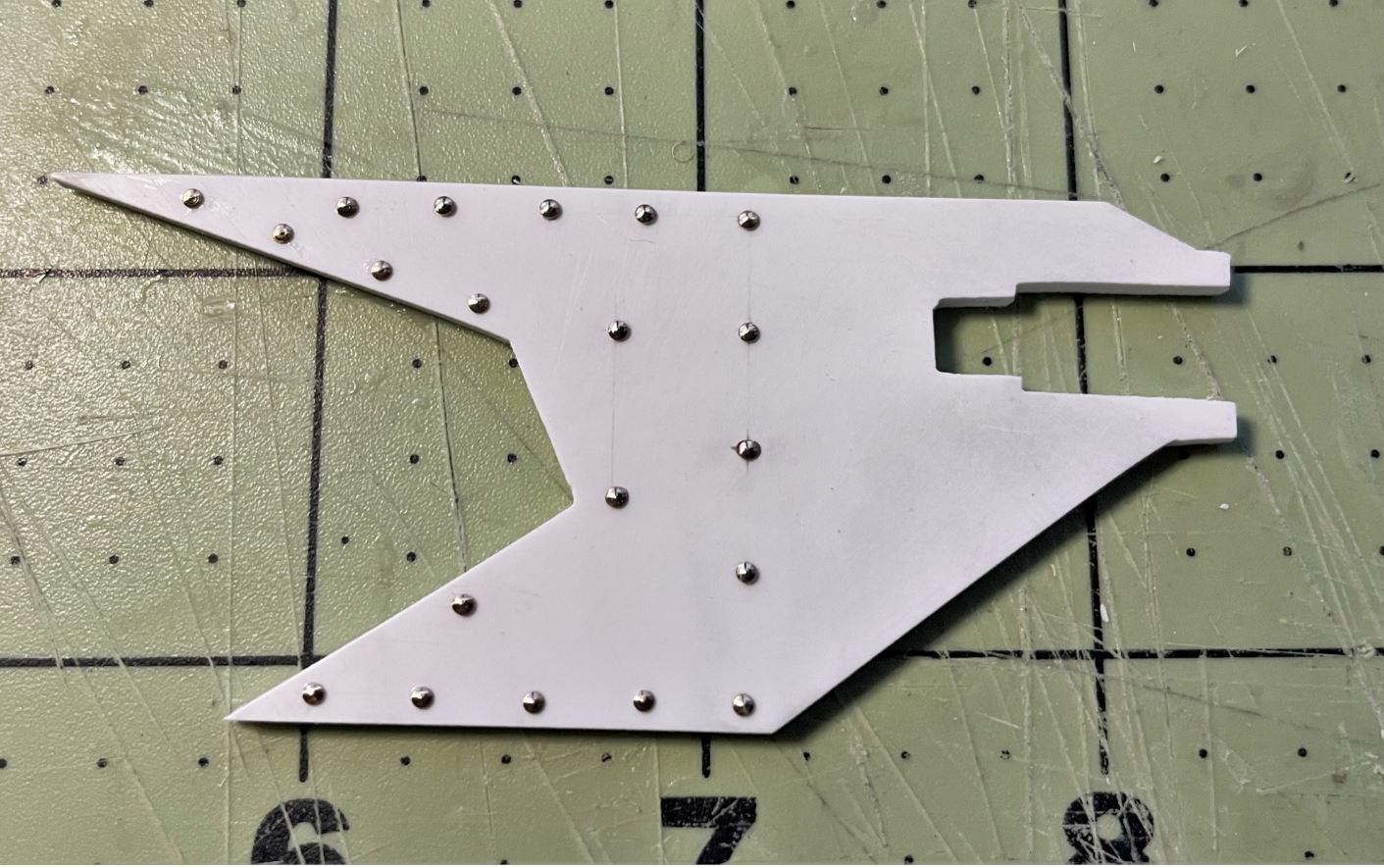 For now, let's take the one for the exterior right side and do a prototype, which will avoid repeating mistakes and will speed up creation of the others. Rivet positions are planned and then installed.