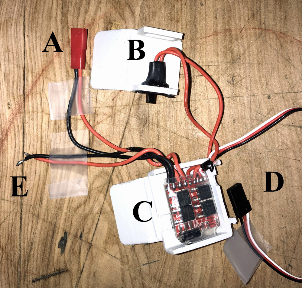 Plug the ESC into any remaining channel of the RX, then connect the battery to the ESC. Turning the ESC on (Switch labelled