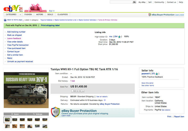 The KV was on eBay 1 hour and 13 minutes and sold. Amazing.