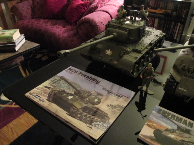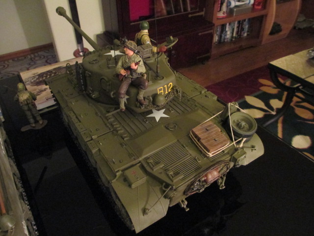 I've been out and about all day but I did finish the Pershing last night at 1:00am. It was one of those things where last minute little ideas like drilling out the bore of the Commander's .45 and applying some ammo can decals went so smoothly that I was pin washing then weathering and at last reaching that point that Scalawag speaks of. Anything else would have been too much so it was finished. Apologies, I was going to get back to Alpha and you all on the 'K' ration crates before I finished the work but everything just fell into place. I'll do a Show-Off thread later this week. Pictures: