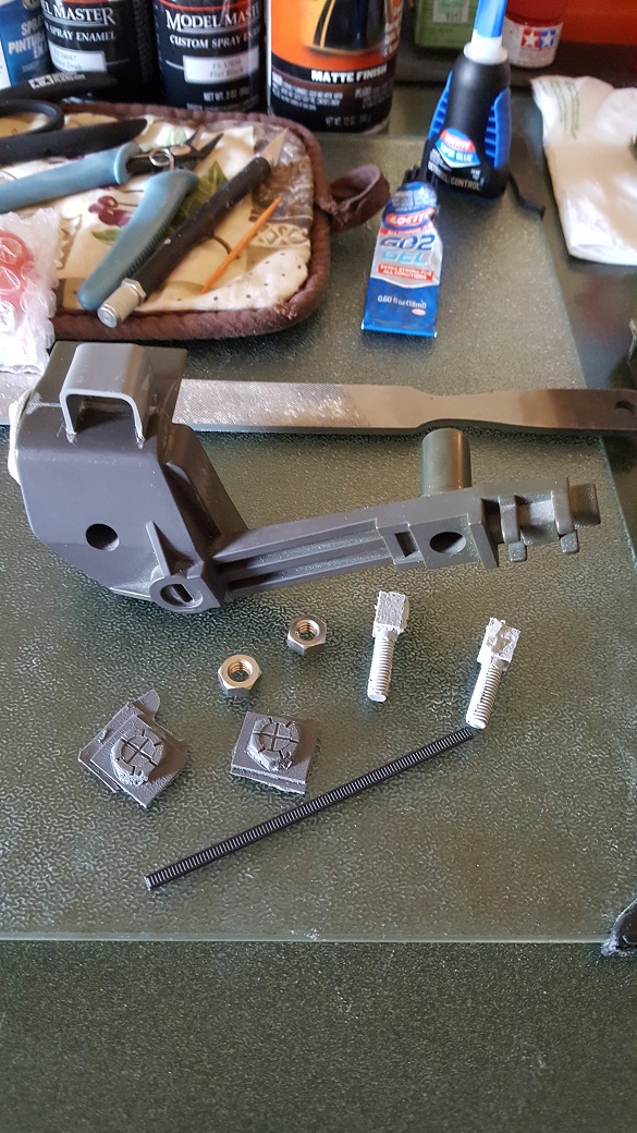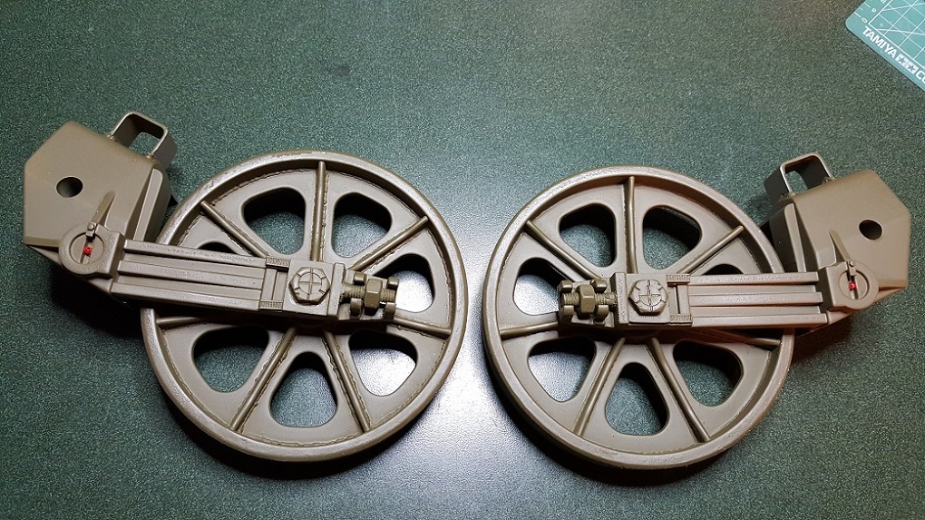 Thank you my Friends. Some additional weathering once installed along with covers for the attachment points will really help as well. The big 'Trick' will be making them actually provide track tension. 21st Century does it ( or tried to do it ) by having the idler and arm move up and down along a curve ( sort of like how the front idler on a Pershing or Walker works just not as complicated_ no road wheel involved ). Their spring is way too stiff to allow this and their contact points are plastic on plastic so they lock up once tightened down. I will use some brass tubing and washers to help out the lock up problem and have to shop around locally to find a slightly less stiff spring so as to allow some movement along that curve for the idler and arm. Thanks again for looking in!