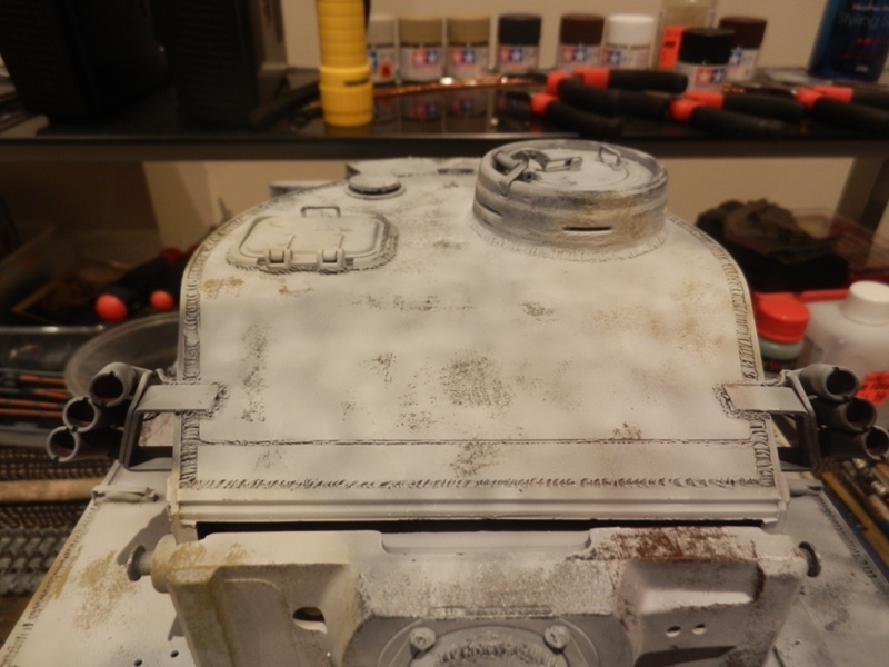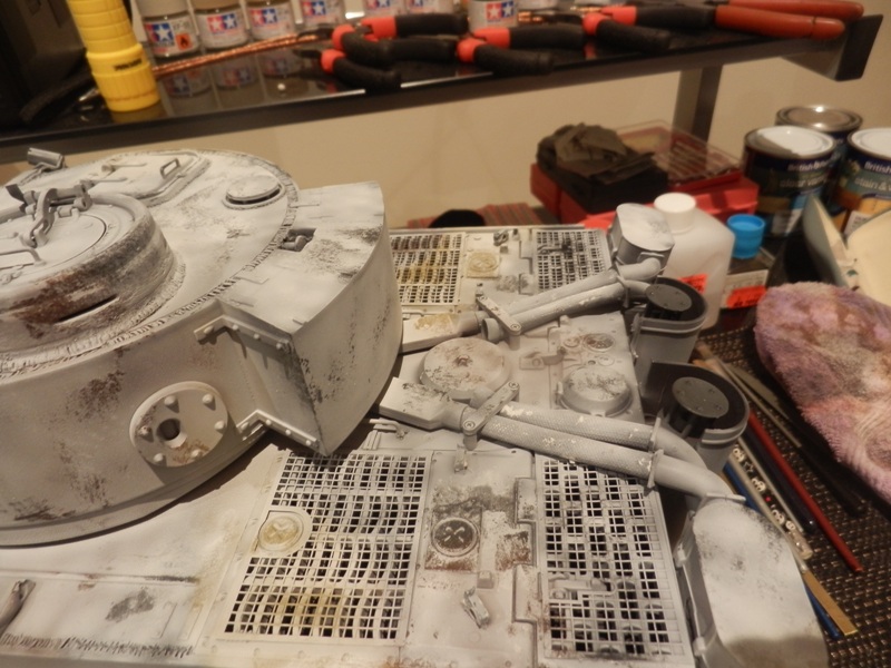 The subject pic is quite white in places, but very grey in others, so by the time I take the similar patches off the barrel, the usual crew access areas, add the helmets and the pole & mud up the drive train he should be close.