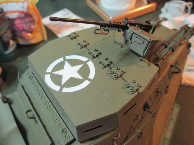Herman, there weren't a lot of these M36B1s in combat but they were there and saw action at the Bulge and in Germany. Yep, I'll bet a convertible Tank Destroyer was not the most popular thing in any kind of bad weather, metal or canvas temp tops not withstanding. Tonight I did a little research and applied the basic markings for the vehicle. From the 605th up to the 899th, it could have rolled out of any of their Depots. Pics: