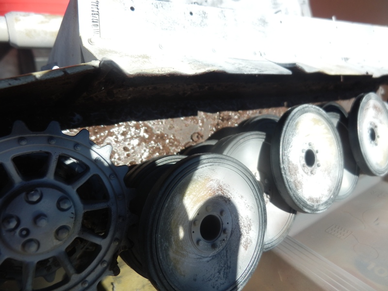 I can do more mudding up once the tracks are fitted but the areas behind the roadwheels are to hard to do with tracks installed(as I found on my Jagd.)