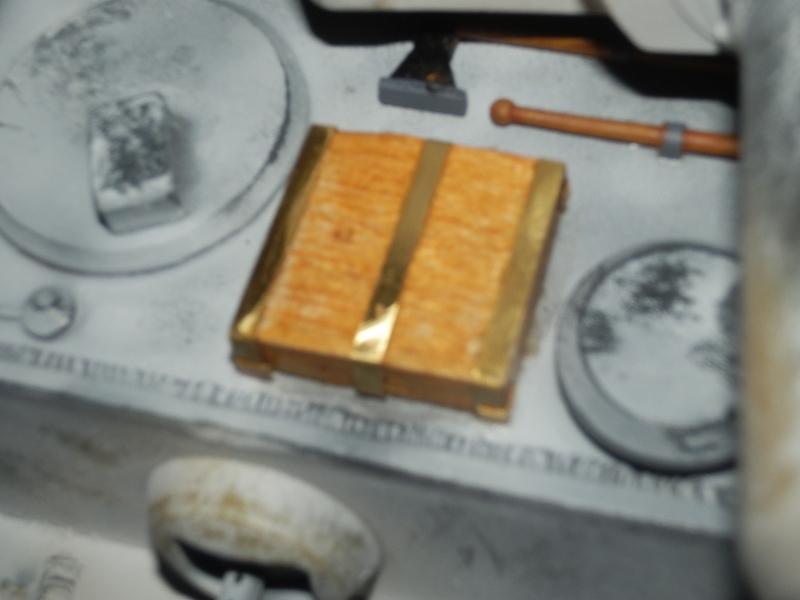 Made a jack block out of balsa and brass engine cover screen sprue, coated with British Paints Golden Oak Stain & Varnish same as the barrel rods.