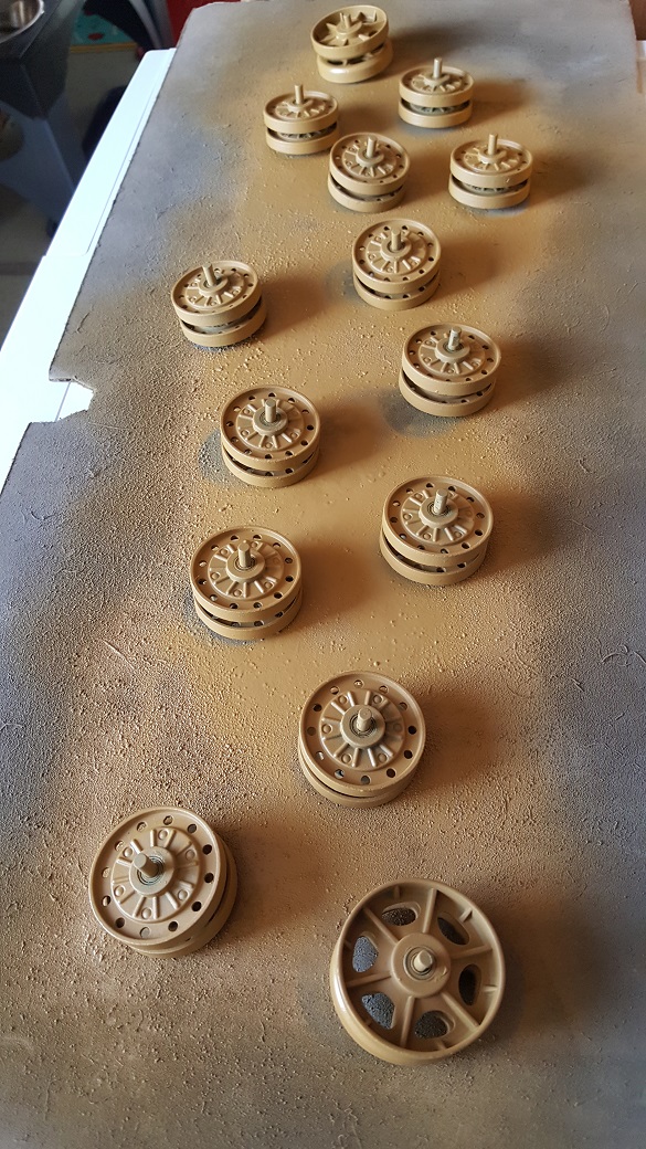 A Desert Mustard refresh of the backs and rims of the road wheels and idlers