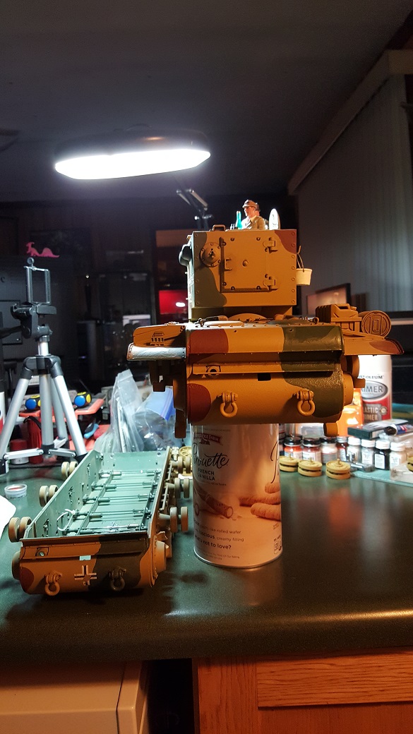 Now to use the Rottbraun and the Olivegrun to match the paint scheme on the upper again.