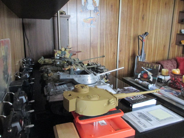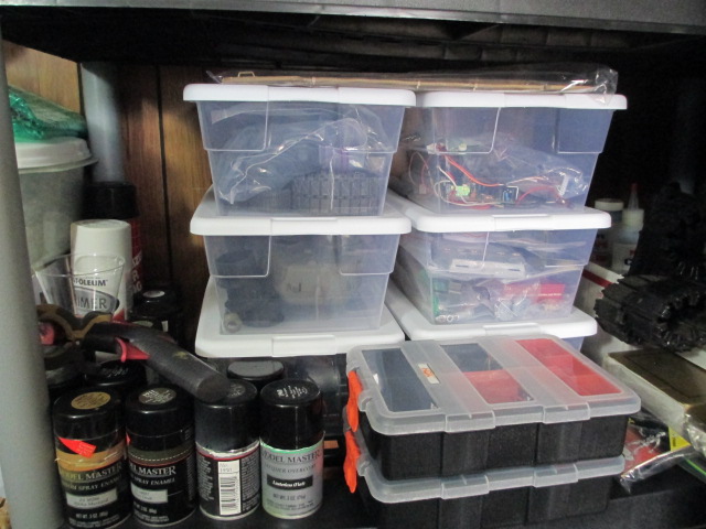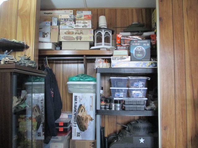 Thanks to you all for the encouragement. ;o) I am waiting for a new torch from Dremel. It should be here today. Also, looking for a gross of ECW JST 21 connectors to be delivered. Once those things arrive, I can complete the electronics and get on to the last couple of details in this build. Yesterday, I took time to organize the Tank Room's closet. Now, I can see what I have got in the way of spares, tank hulls, etc...