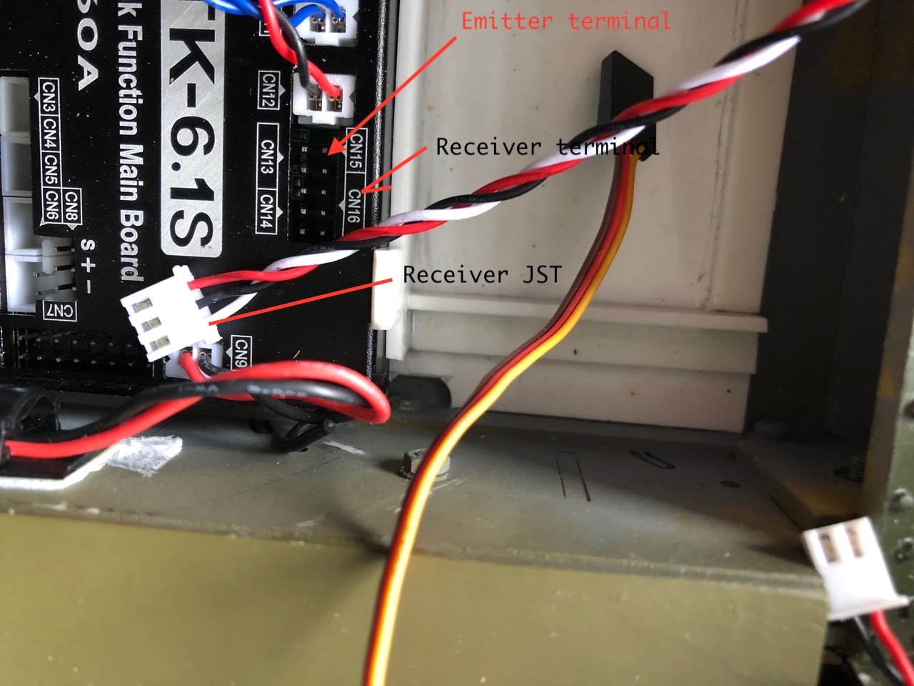 But, it is irritating to have to graft a slimline three-pin (servo type) connector onto the one supplied with the MFU. That IR receiver JST would never fit.
