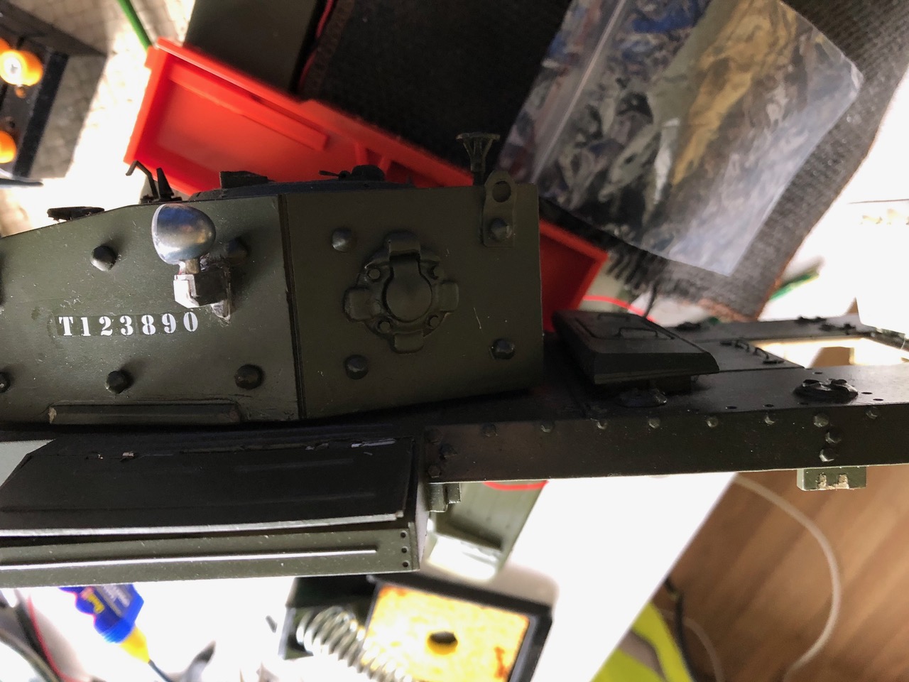 Once the spotlamp/spotlight has been fixed in place, and a two-pin connector fitted, it will go into the LED 3 array-Tail lights (LED 4 is for the headlights LED 5 for MG flashes). After that, I can connect everything up, and test it out. I"d like to put some sort of flash in the barrel, but the bore is small. That'll be a later add-on, when all else is okay.