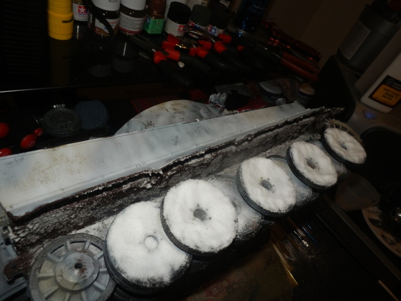 It really has a great texture & is easy to work with. Used white glue to secure this stuff on the roadwheels as an experiment.