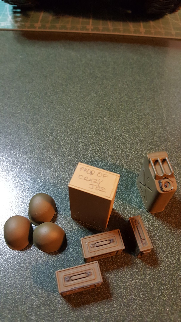 Carl!, Thank you, Doc. It's not completely accurate but the upgrade adds to Joe without altering his 'Joe-ness'. The mail brought another part of the Stowage today, a couple of Tamiya Pershing sprues from AAF on the East Coast. I put one together this afternoon, painted and weathered it for the M36B1 and put the other sprue into spares. The Schumo stuff is close now. I'm excited to get this one completed and move onto another anticipated build. Pics: