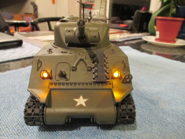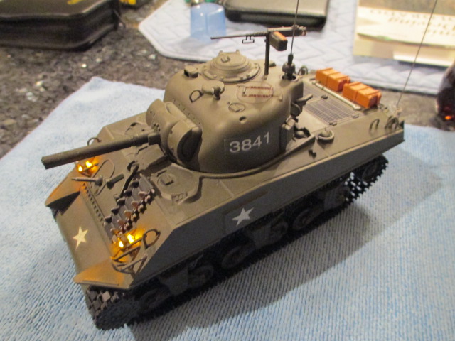 Your tank is far, far more advanced than mine. There is no sound at all or programming available on the 3841. I am glad to hear that the 3841-1 has a standard set of functions including main gun flash and machine gun sound. On the 3841, the main gun muzzle just glows red and the gun goes up and down when activated. Your Sherman makes an excellent base for a build. The tank tracks still work well without the center guide horns. I have been using a set of the new ones on my 3841. Aside from the odd voice on shutdown, *chuckles*, you are on your way.