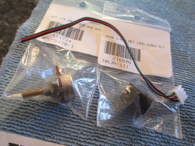 Some serious goodies in the Post tonight. From Alpha, I received a turned brass barrel for the M4A1 to replace the aluminum and plastic sleeve one on the tank now. I also received the bridge board for the cable plug in from the 2.4 GHz set in the lower hull. This piece is rare as Hen's teeth (at least it was for me) and it was very kind of Alpha to turn it over so 'In The Mood' would work. From Immortal Hobbies, I received the most serious looking Sound Pot I have ever seen. It will be mounted so opening a hull hatch will allow one to adjust the sound. Tonight, I am zipped from a social weekend so I managed to take pics of the new booty received and drill out the holes around the bow .30 cal mount for the pins a canvas cover would be mounted on. Pictures: