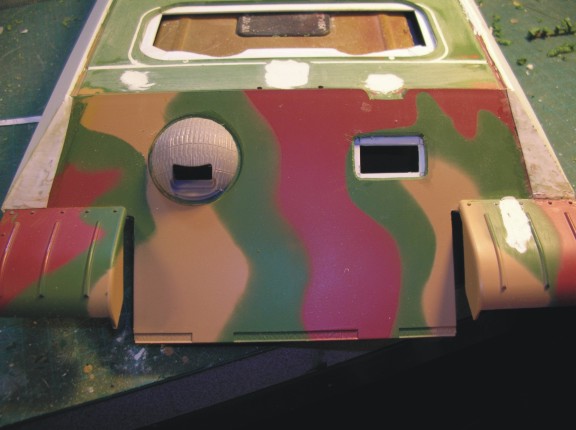 After a couple of days the resin has set up enough that I can handle the hull no problem. So I turned my attention to the back engine deck and cut out the outside panels which are going to require a complete makeover. I also started putting in the styrene support that will hold the new panels in place.