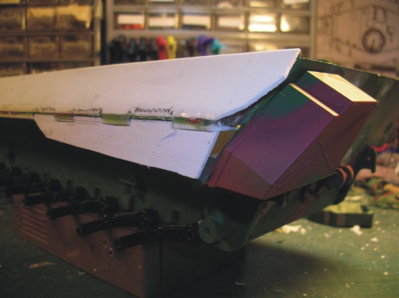 And one more shot I will be building a box behind the vertical plate extending in to the hull like on the real thing and that will give the vertical plate strength against any whacks the vertical plate might take battling.