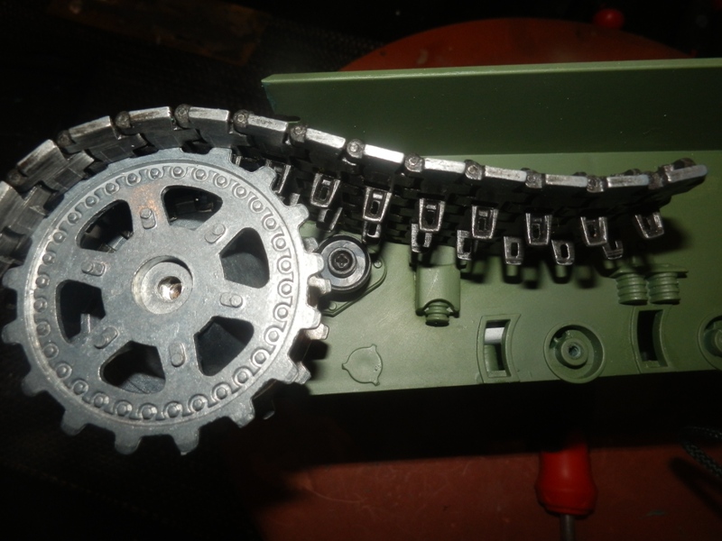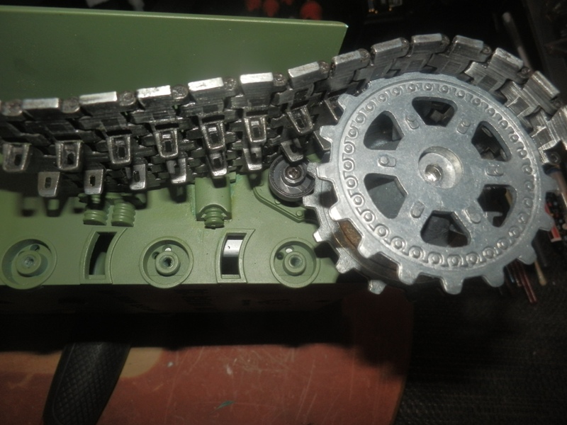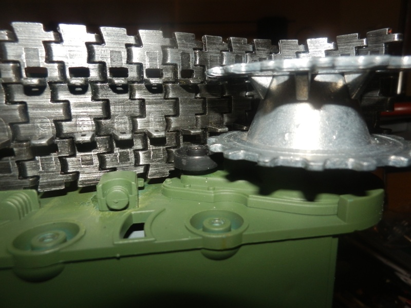 If the plastic reverse slack roller needs to be changed to metal at any point, I will get a couple of metal return rollers, leave the tyres off, & grind the tyre ridge off to get the same effect.