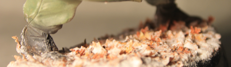 The branch sample I did was a simple wire armature that I just primed and dipped in paint and pigments. Since I was doing the animation, I didn''t really have time to really pose the leaves. You can bend and curl them to get them to sit the way you want. They're sealed with acrylic, so using a PVA glue will hold them nice and tight.