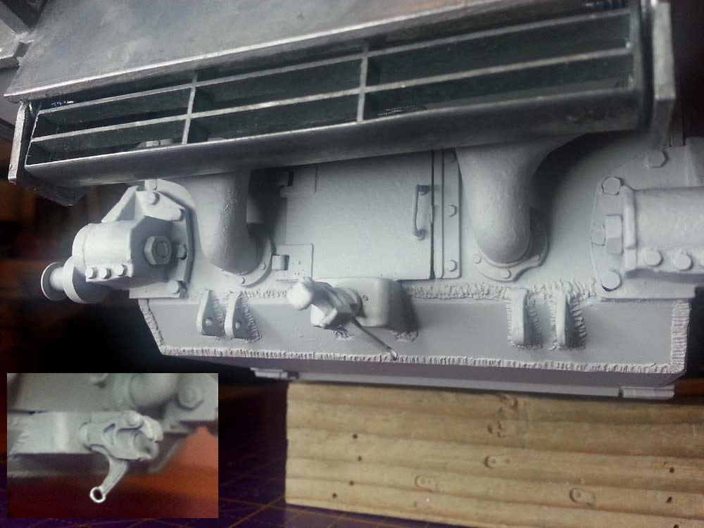 This is the rear hull view with the exhaust deflector up. As can be seen it now clears the exhausts and the engine door, and I think looks a little more correct now;