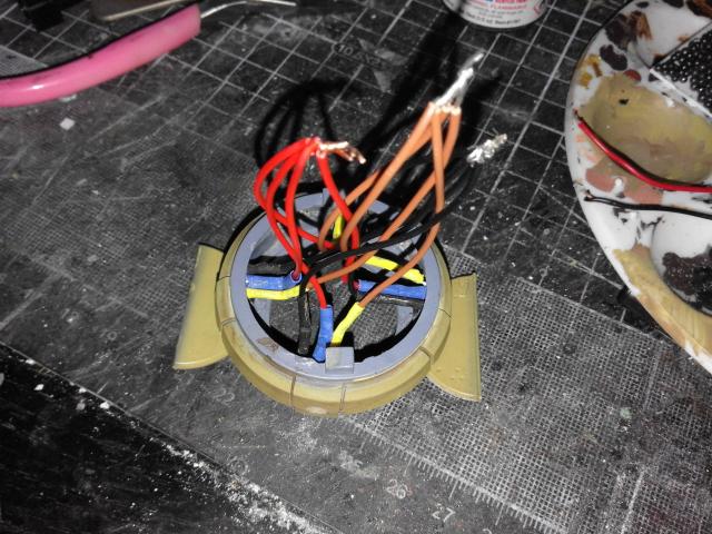 It looks really good in that colour, well done. It may be the camera angle but the wires in the turret look a bit thick, there is hardly any current going through the sensors, so you can use the finest gauge that you can find, it makes it easier to bend around things and hold down with cable clamps and ties. :thumbup: