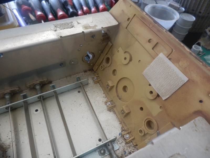 Off with the fake mounting points for the spare track links. I have a top quality set from H/L to fit so it at least looks right !
