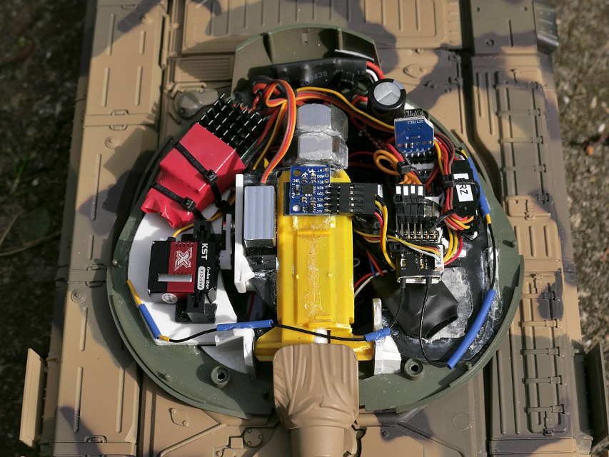 Mit der Vielfalt an Lichtern und Action, die Sie in einen Tank gepackt haben, bin ich beeindruckt! Tatsächlich ist die Menge an Elektronik, die Sie in den Turm packen, eine Show für sich. Warum richtet das Kanone auf nachdem es gschossen ist? Dieses scheint mir bei moderne AFVs oftmals so.
